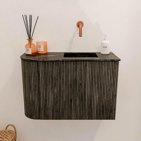 - Wastafel Faye in Lava kleur, rechts gepositioneerd zonder kraangat voor maximale flexibiliteit