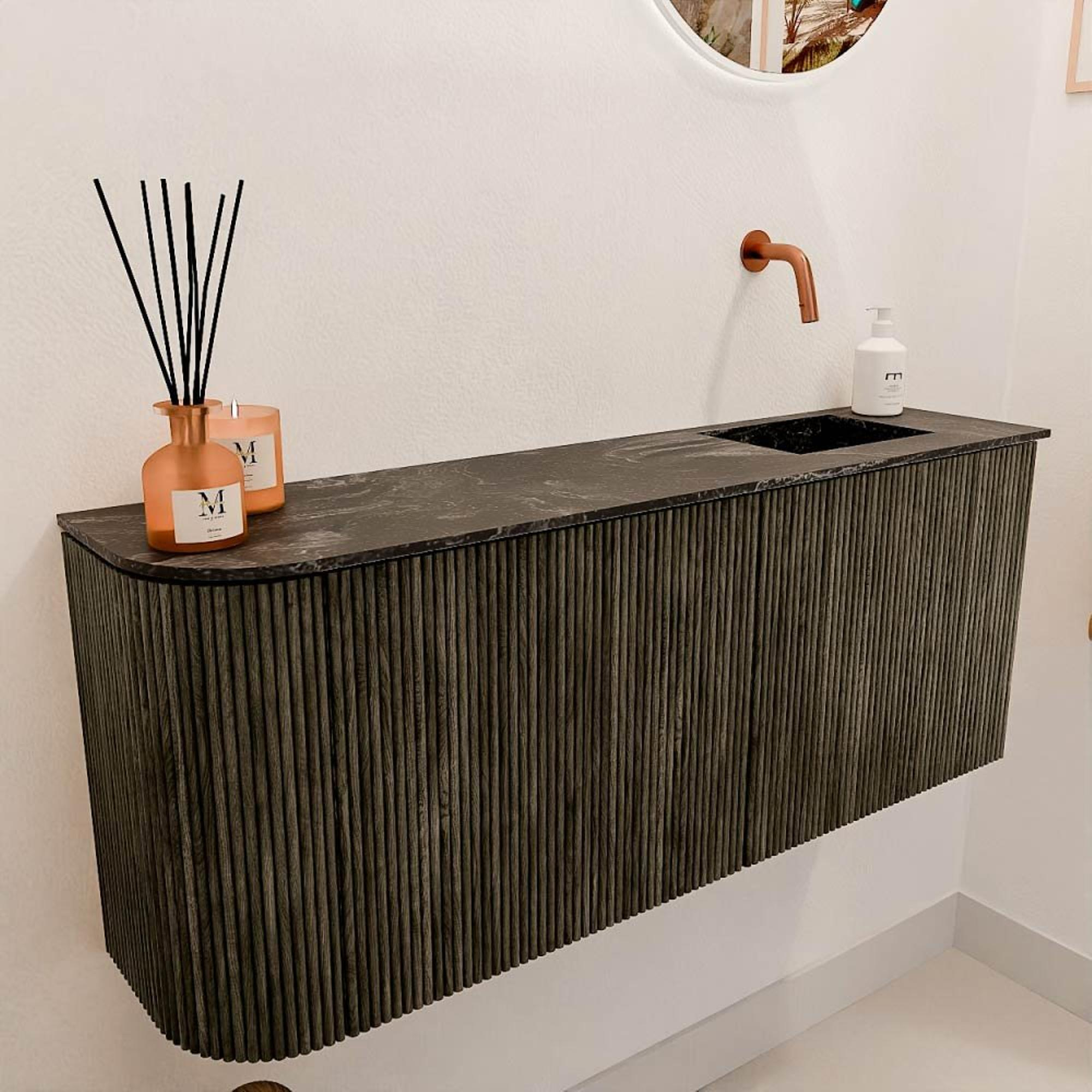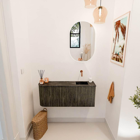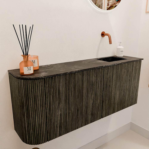 - Wastafel Faye in Lava kleur, positie rechts zonder kraangat – flexibel in gebruik