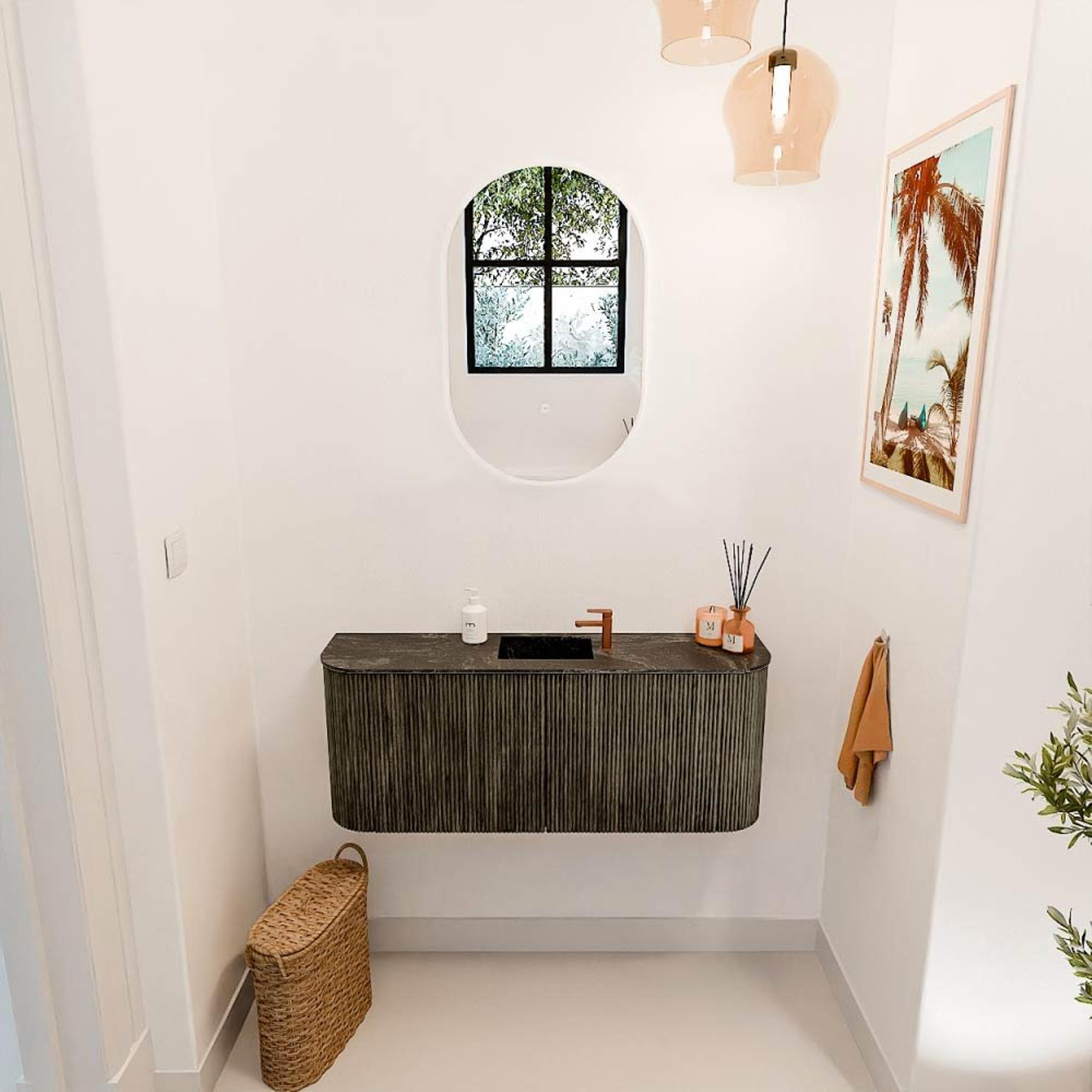- Wastafel Faye in lava-kleur, 104,2 cm breed, met centraal kraangat