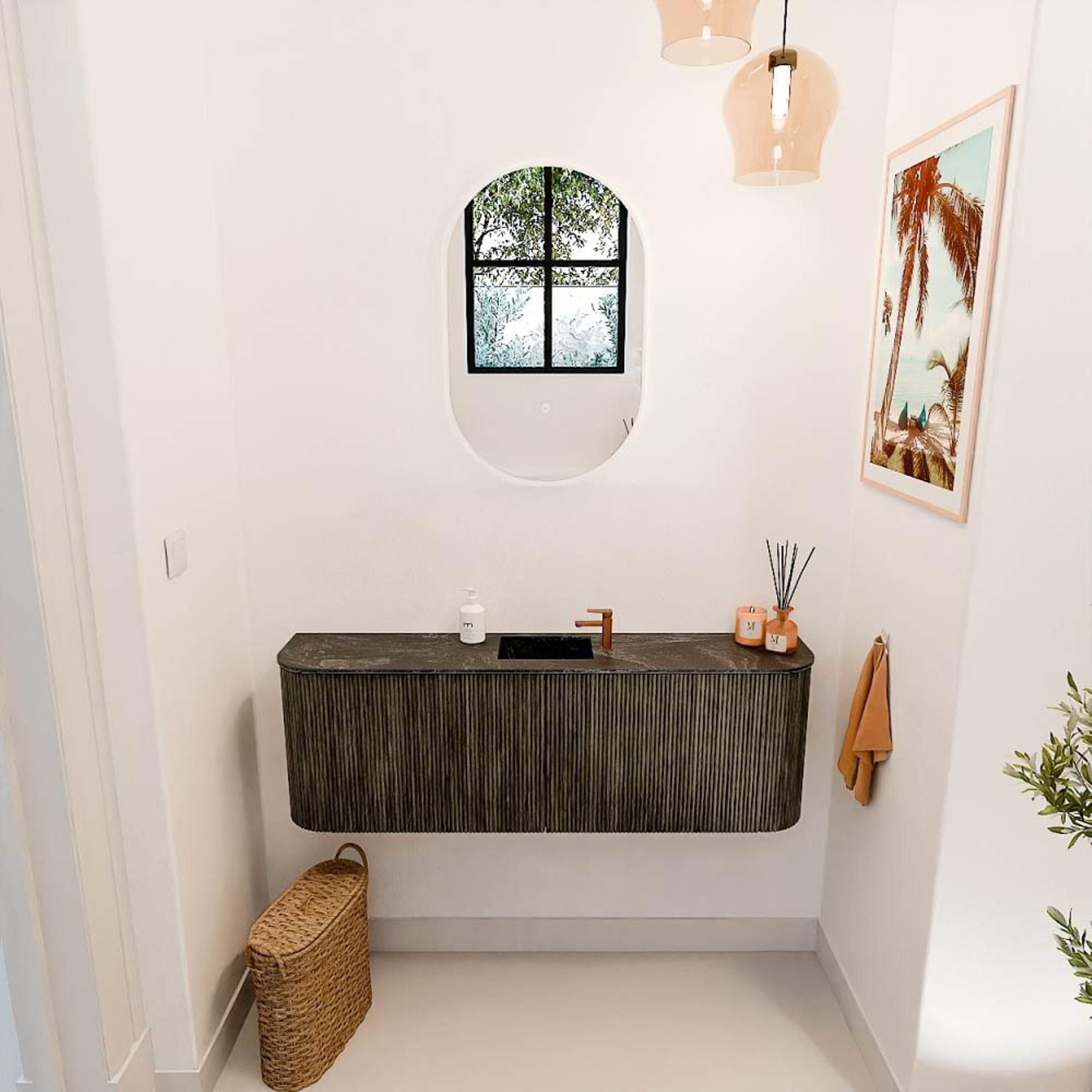 Mondiaz JOYA-DLUX 123.2cm toiletmeubel - ronding links en rechts kleur Shadow - Wastafel FAYE positie Midden 1 kraangat kleur Lava.