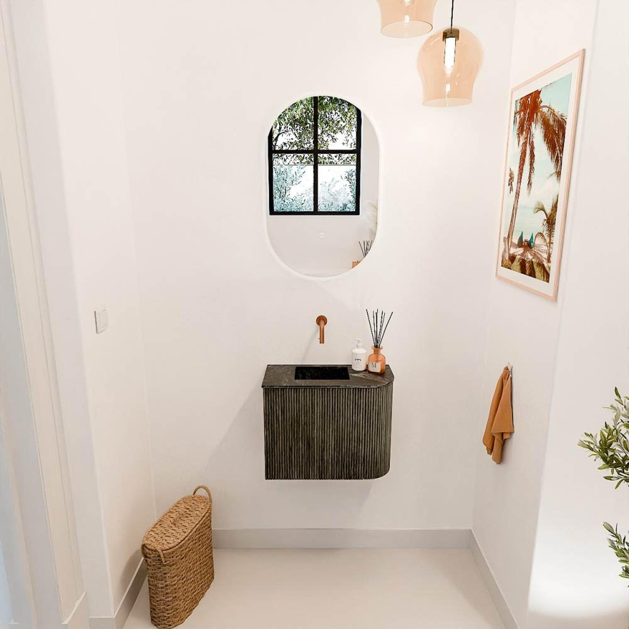 Mondiaz JOYA-DLUX 51.6cm toiletmeubel - ronding rechts kleur Shadow - Wastafel FAYE positie Links Zonder kraangat kleur Lava.