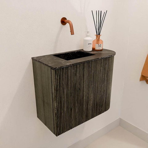 - Wastafel Faye in Lava-kleur, links gepositioneerd zonder voorgeboorde kraangat