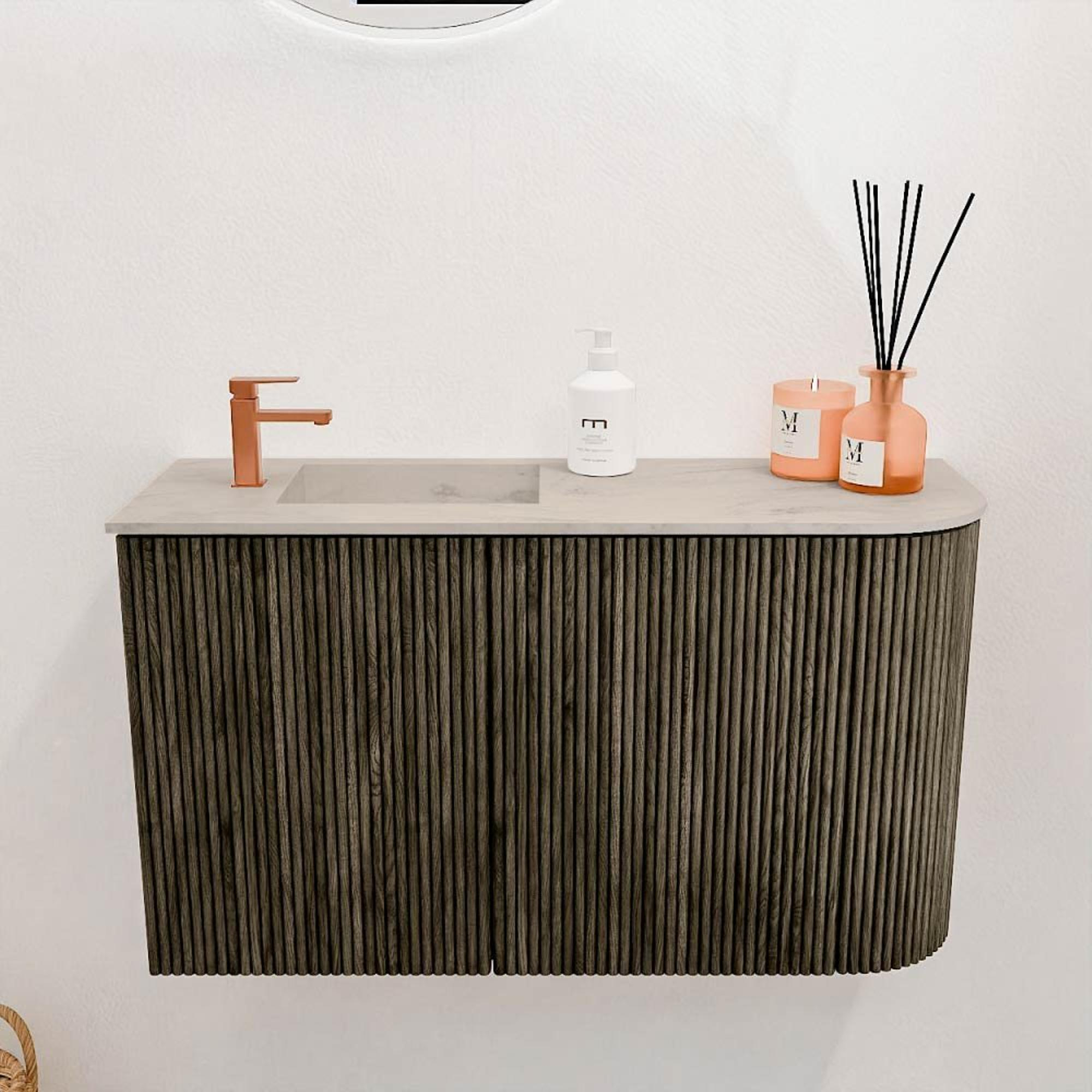 Met dit prachtige meubel geef je jouw badkamer direct een stijlvolle en warme uitstraling. Het combineert een modern design met natuurlijke materialen, waardoor het niet alleen mooi oogt, maar ook praktisch in gebruik is. Dankzij de subtiele ronding aan de rechterzijde en de zachte kleur Shadow past het meubel perfect in diverse badkamerstijlen. De bijgeleverde wastafel in Opalo met een kraangat aan de linkerkant maakt het geheel compleet en zorgt voor een functionele en elegante afwerking. Dit meubel tilt jouw badkamer naar een hoger niveau en maakt elke ochtendroutine een stuk aangenamer.