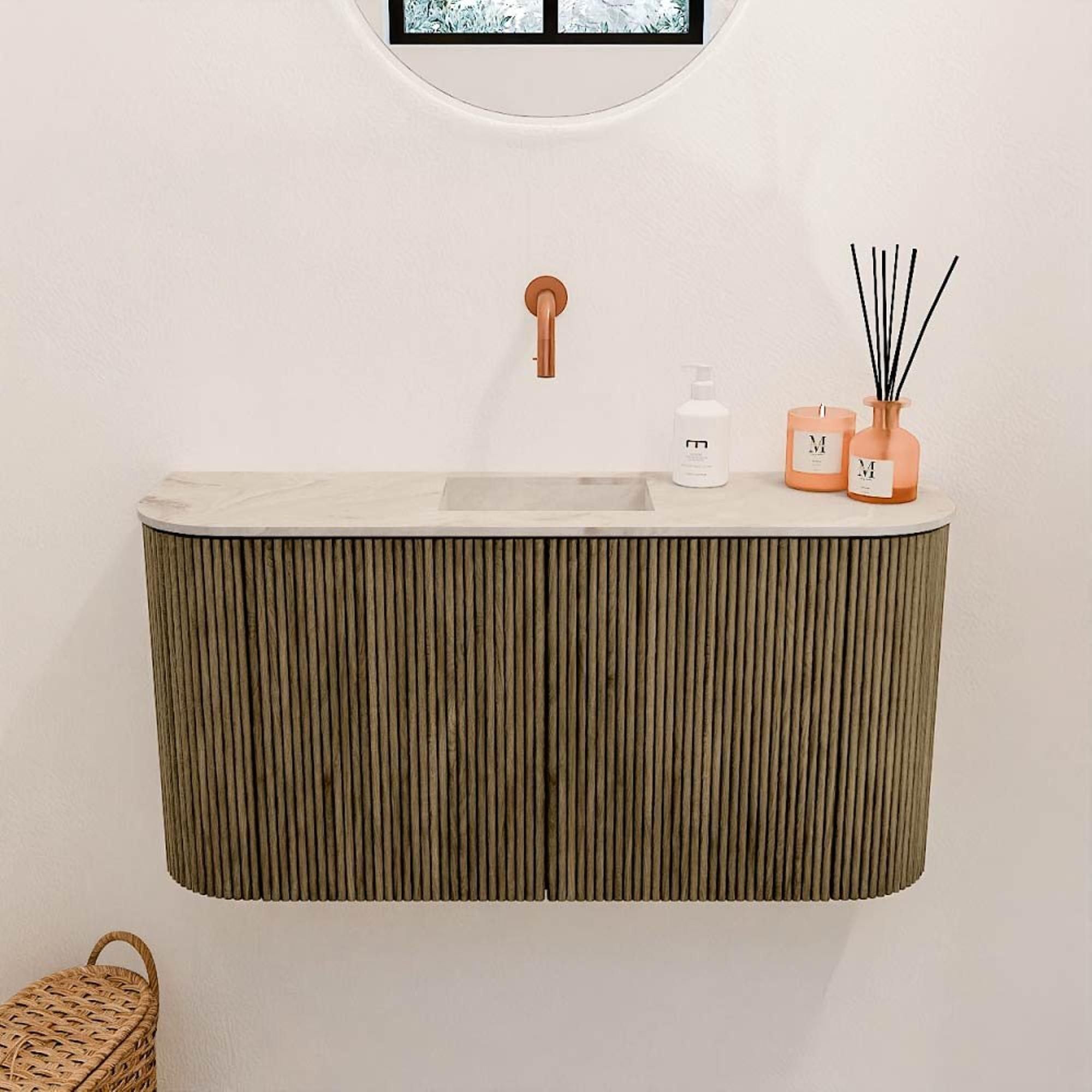 - Wastafel Faye centraal geplaatst zonder kraangat – maximale vrijheid in kraankeuze