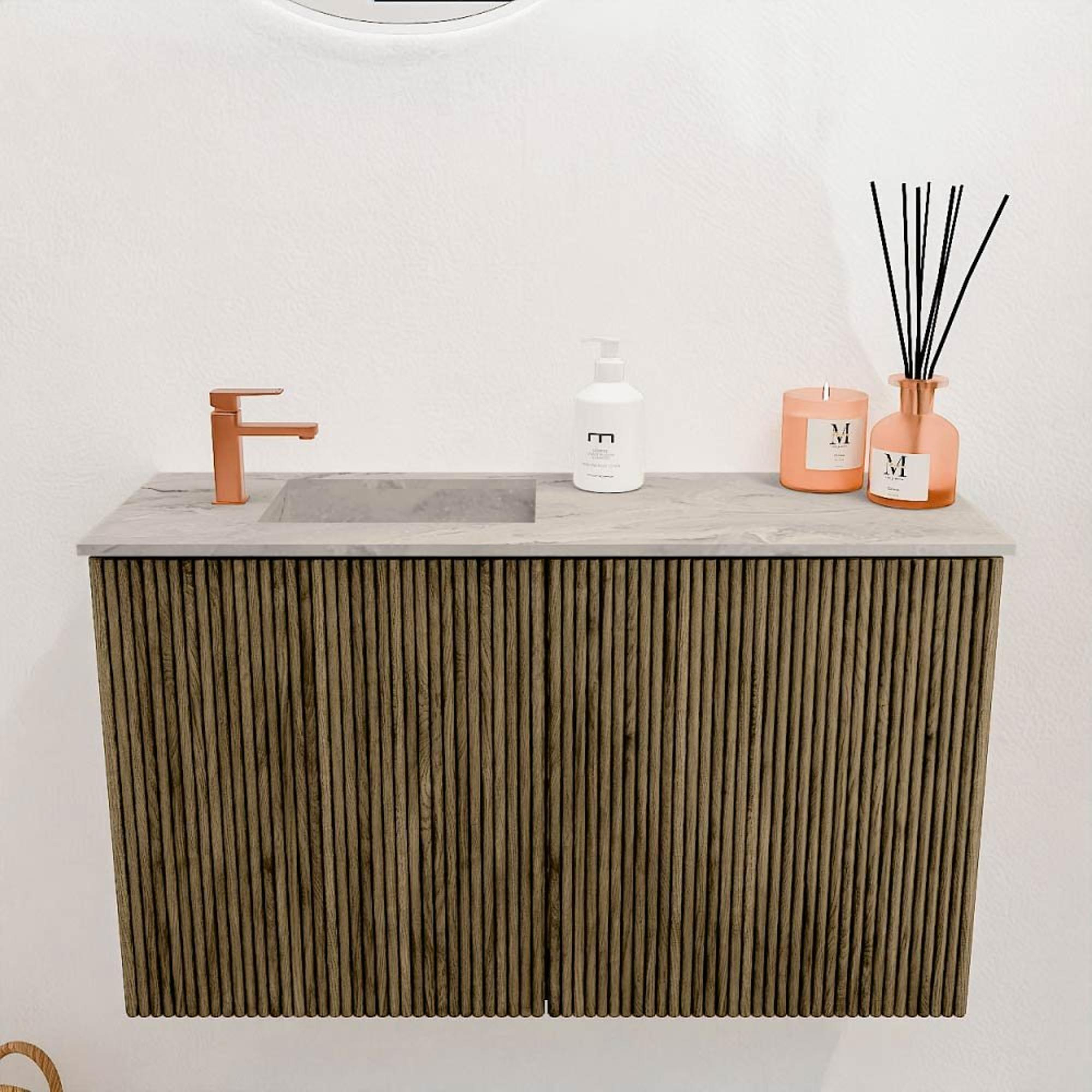 - Wastafelmodel Faye met kraangat links in kleur Glace – fris en licht