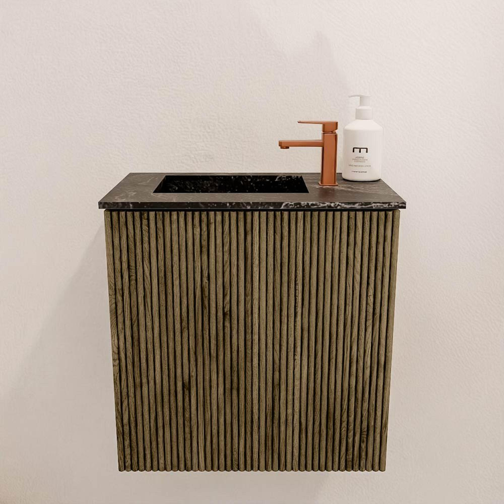 Mondiaz JOYA-DLUX 40cm toiletmeubel - kleur Dusk - Wastafel FAYE positie Links 1 kraangat kleur Lava.