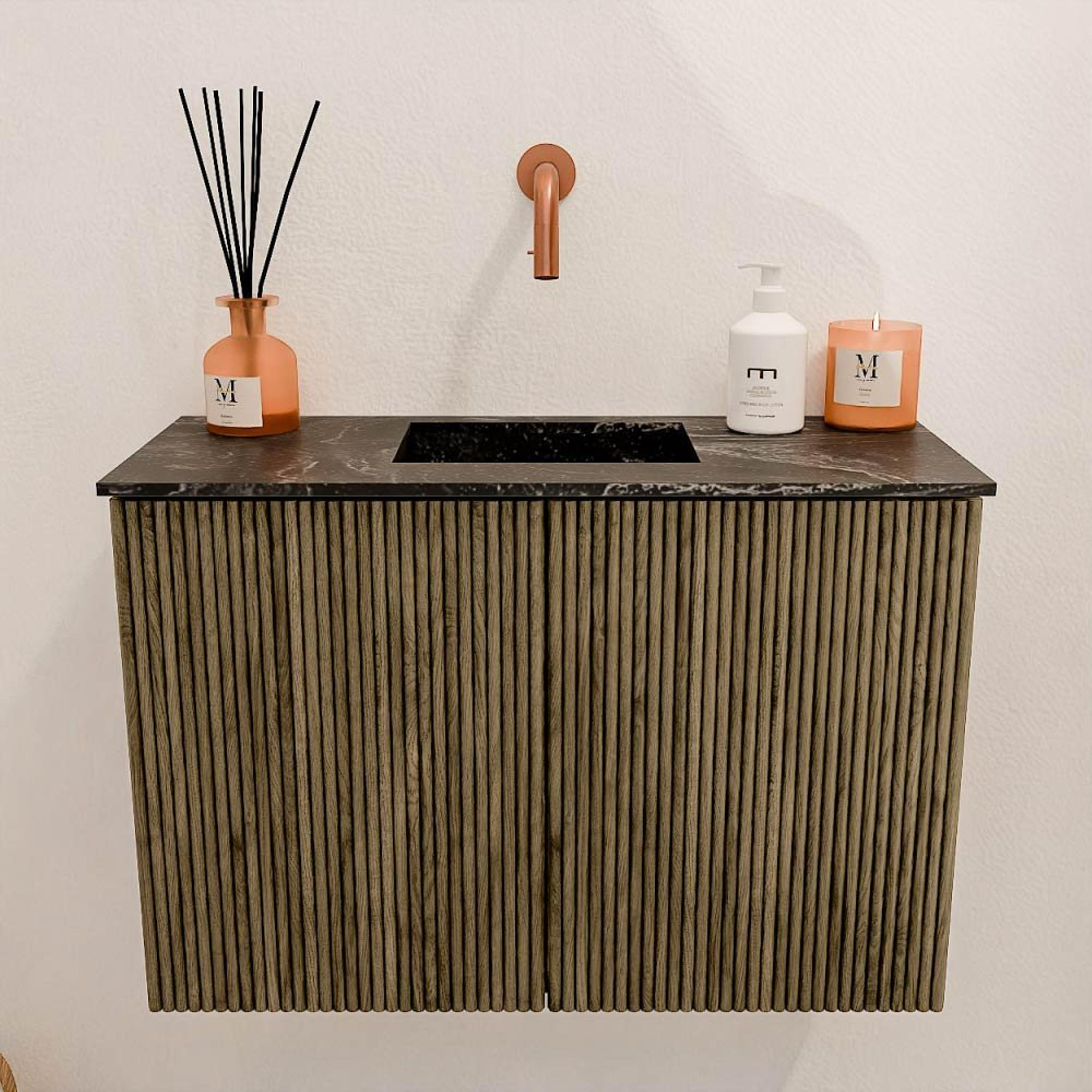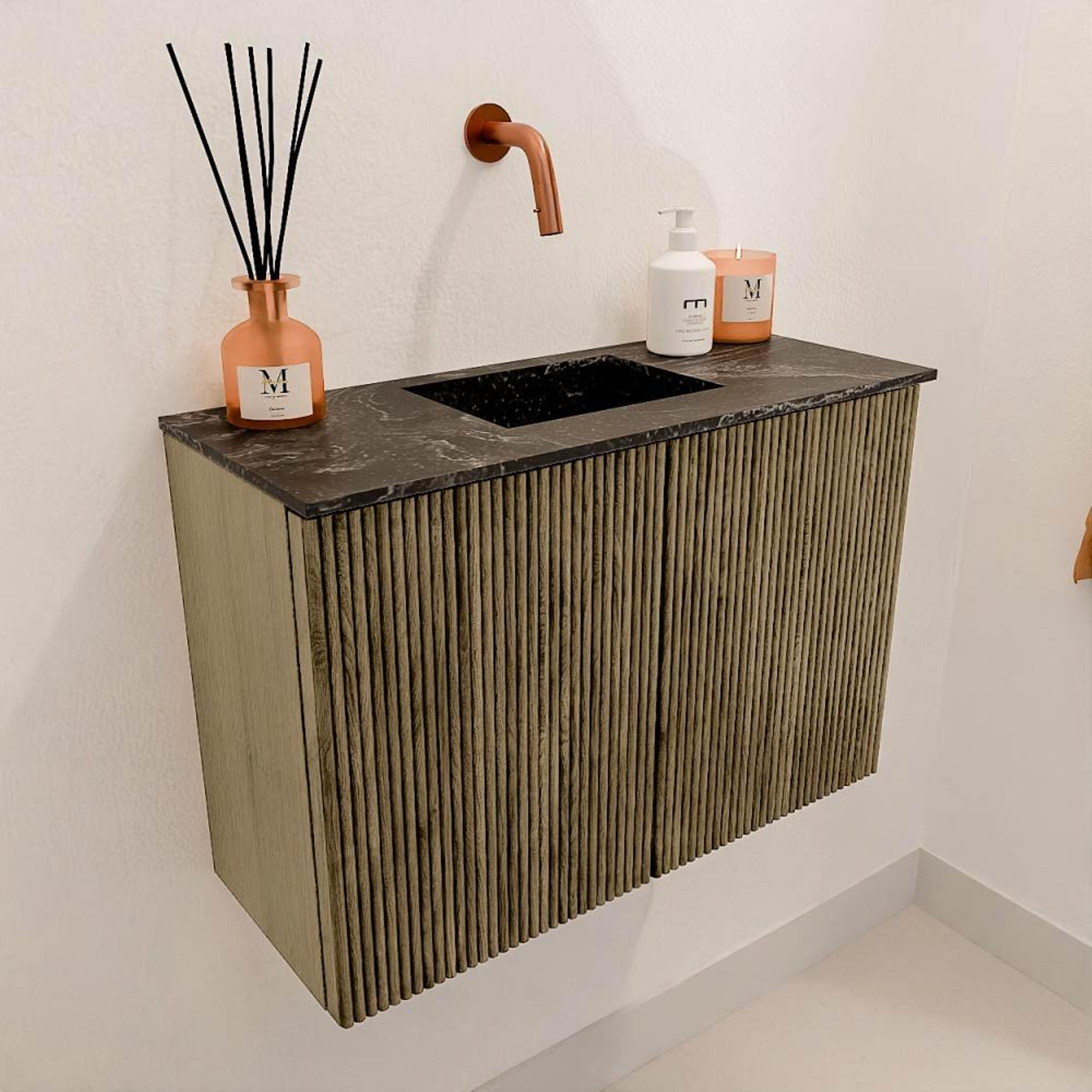 Met dit prachtige meubel geef je jouw badkamer of gastentoilet direct een stijlvolle en warme uitstraling. Het combineert een verfijnde, moderne look met praktische functionaliteit, waardoor het niet alleen een lust voor het oog is, maar ook een slimme keuze voor dagelijks gebruik. Dankzij de hoogwaardige materialen en het doordachte ontwerp geniet je van een meubel dat jarenlang meegaat en jouw badkamer een luxe en tijdloze sfeer geeft. De wastafel is centraal geplaatst en zonder kraangat, zodat je zelf de perfecte kraan kunt kiezen die bij jouw stijl past. Zo creëer je een persoonlijke en harmonieuze ruimte waar je elke dag met plezier begint en eindigt.