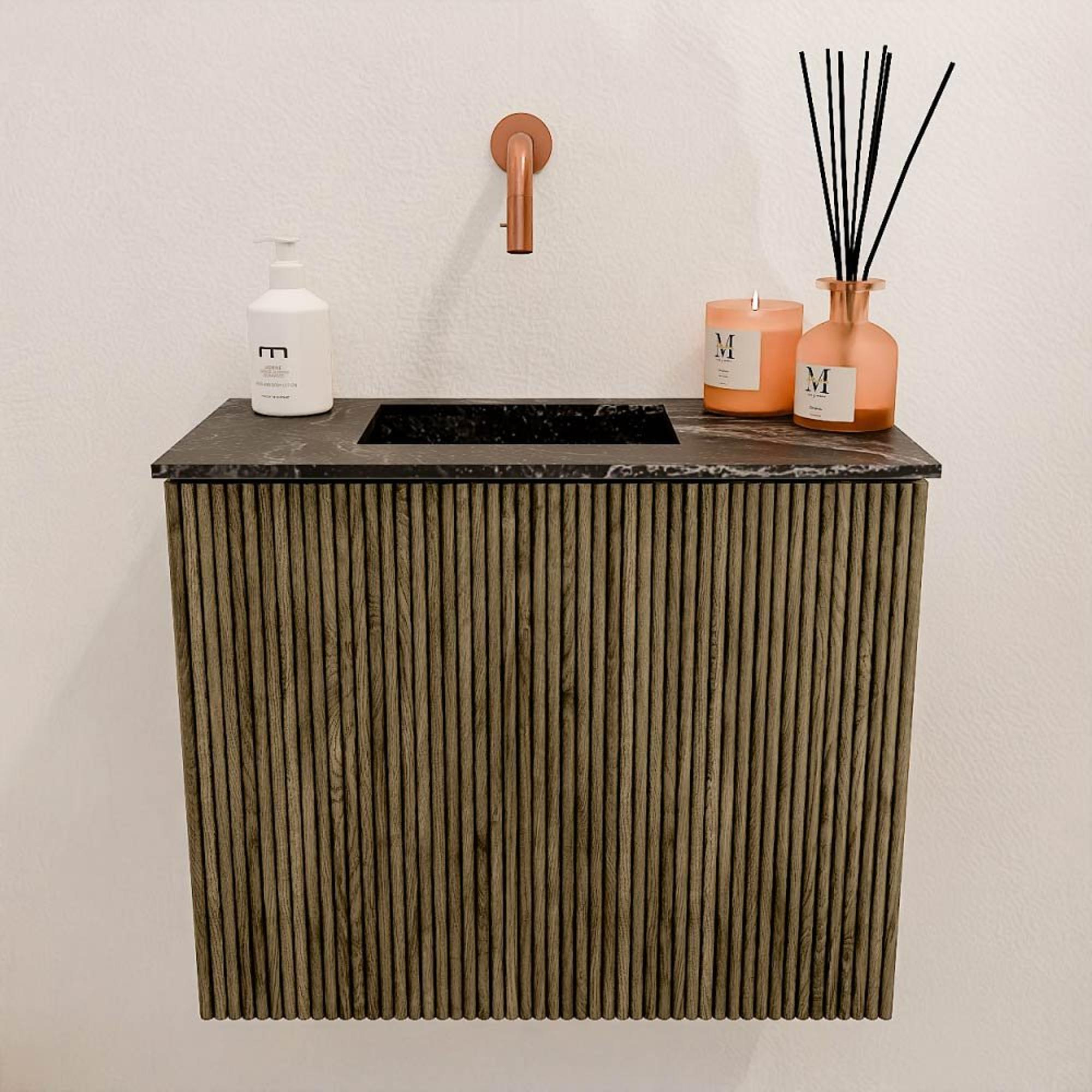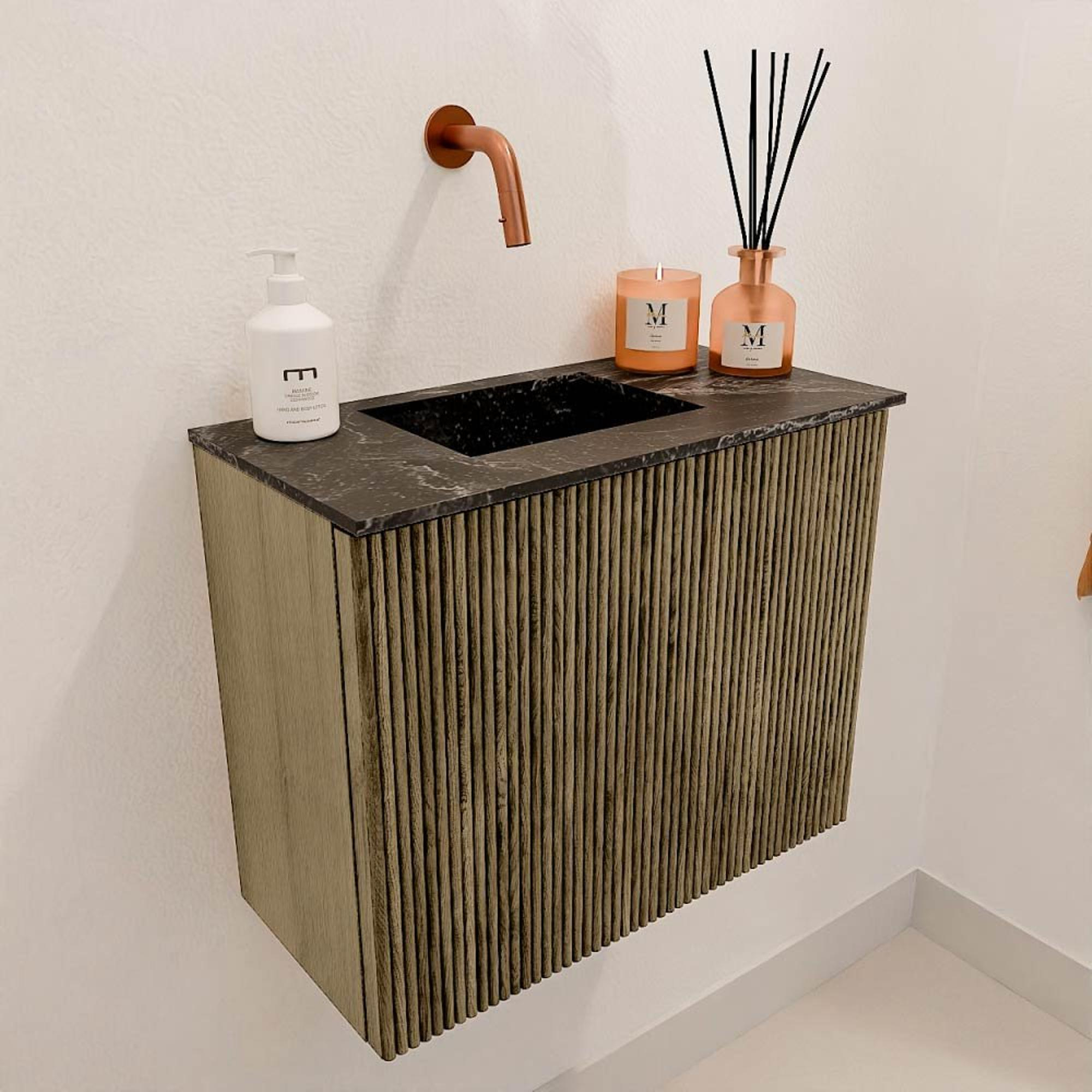 Mondiaz JOYA-DLUX 50cm toiletmeubel - kleur Dusk - Wastafel FAYE positie Links Zonder kraangat kleur Lava.