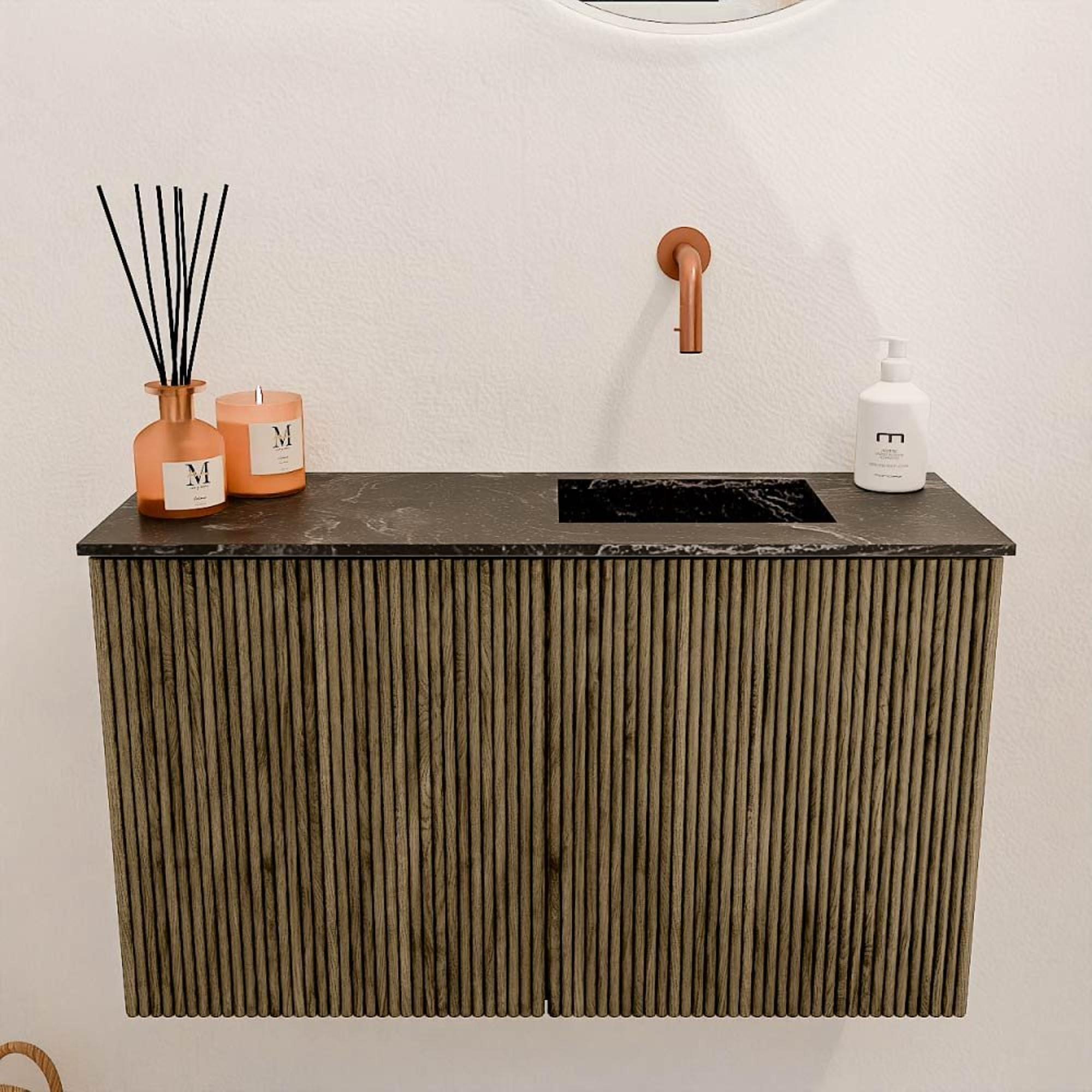 - Wastafelmodel FAYE, rechts geplaatst, kleur Lava zonder kraangat voor maximale flexibiliteit
