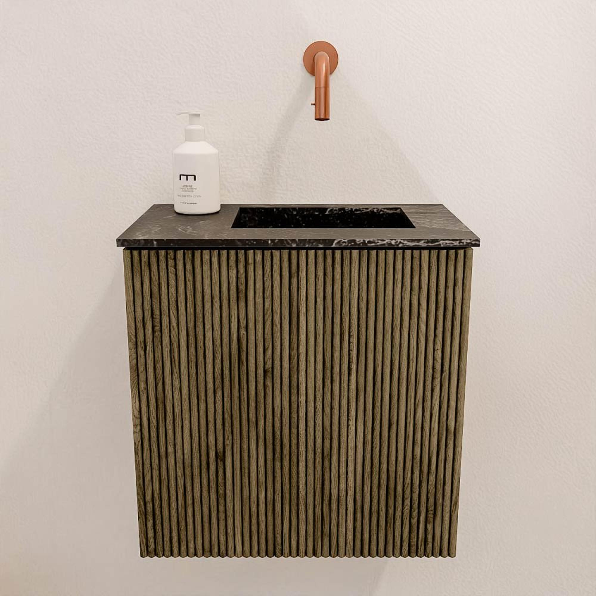 Mondiaz JOYA-DLUX 40cm toiletmeubel - kleur Dusk - Wastafel FAYE positie Rechts Zonder kraangat kleur Lava.