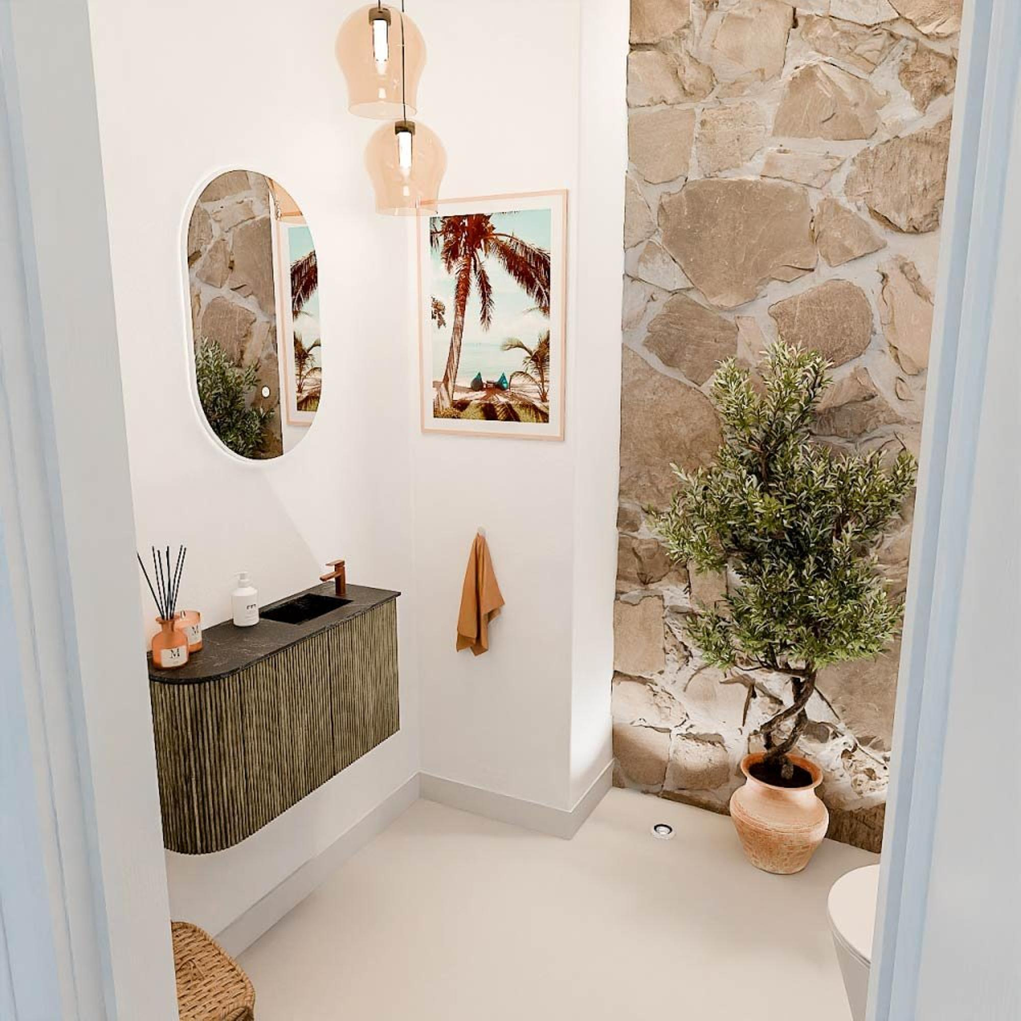 De combinatie van de diepe Dusk-kleur met de natuurlijke uitstraling van massief eiken zorgt voor een tijdloos en stijlvol meubel dat moeiteloos past in uiteenlopende badkamerinterieurs. De subtiele ronding aan de linkerkant geeft het ontwerp een unieke twist en maakt het visueel aantrekkelijk zonder te overheersen. Hierdoor voeg je een verfijnde touch toe die jouw badkamer direct een luxe uitstraling geeft. Het meubel is zorgvuldig afgewerkt, wat niet alleen de esthetiek ten goede komt, maar ook de levensduur verlengt. Zo geniet je jarenlang van een badkamer die er prachtig uitziet en waar je trots op kunt zijn.