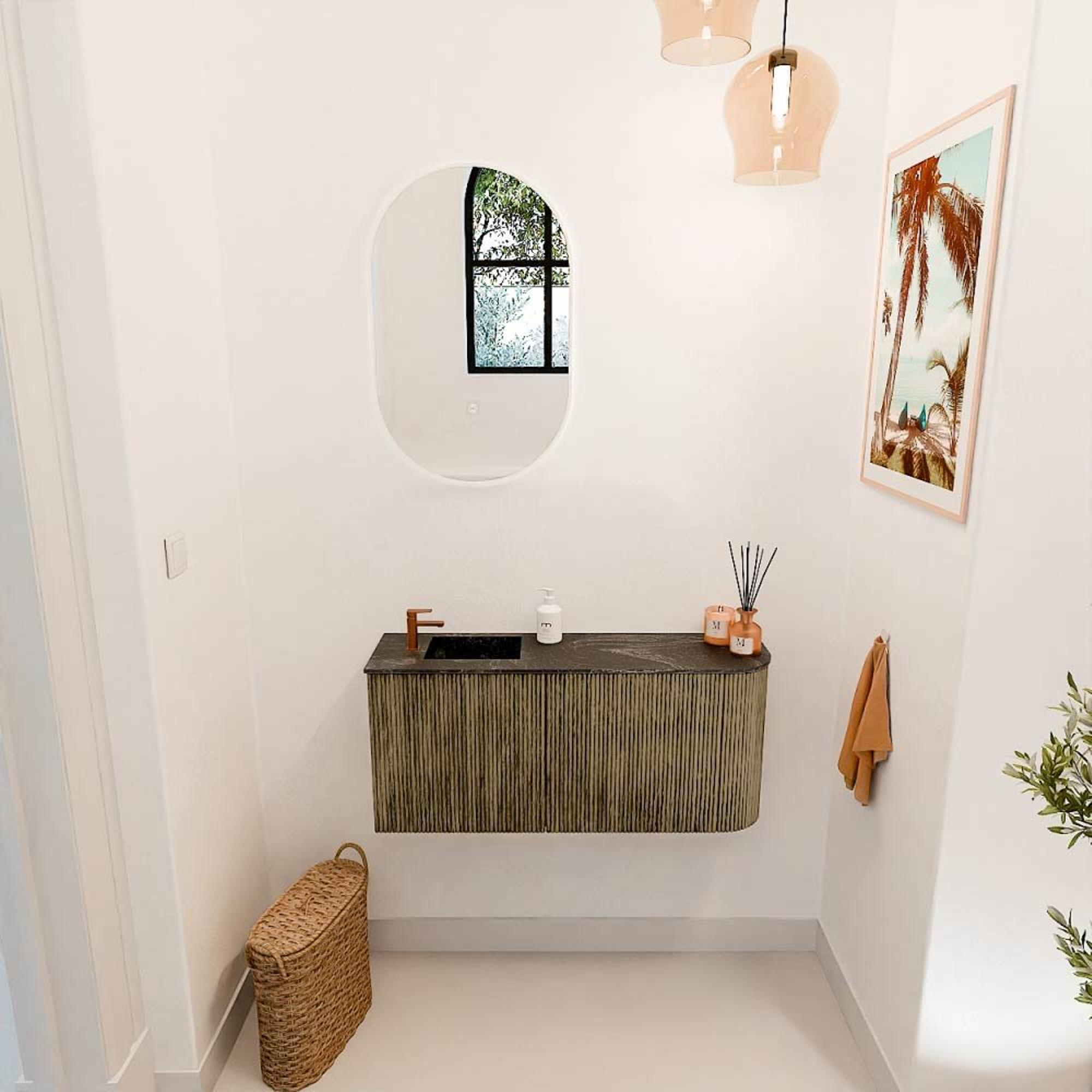 De combinatie van de kleur Dusk met de elegante ronding aan de rechterkant maakt dit meubel tot een echte blikvanger. Het ontwerp is modern en tijdloos, waardoor het moeiteloos past in uiteenlopende badkamerstijlen. Door de warme tinten en het subtiele design voelt jouw badkamer direct uitnodigend en sfeervol aan. Zo creëer je een ruimte waar je graag tijd doorbrengt, met een meubel dat jouw persoonlijke stijl perfect weerspiegelt.