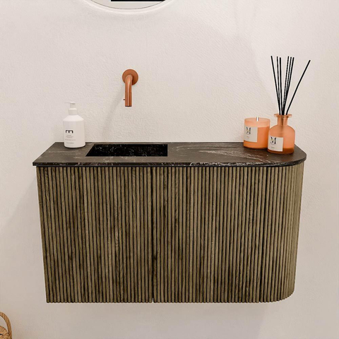 - Wastafel Faye in Lava-kleur, links gepositioneerd zonder kraangat voor maximale flexibiliteit