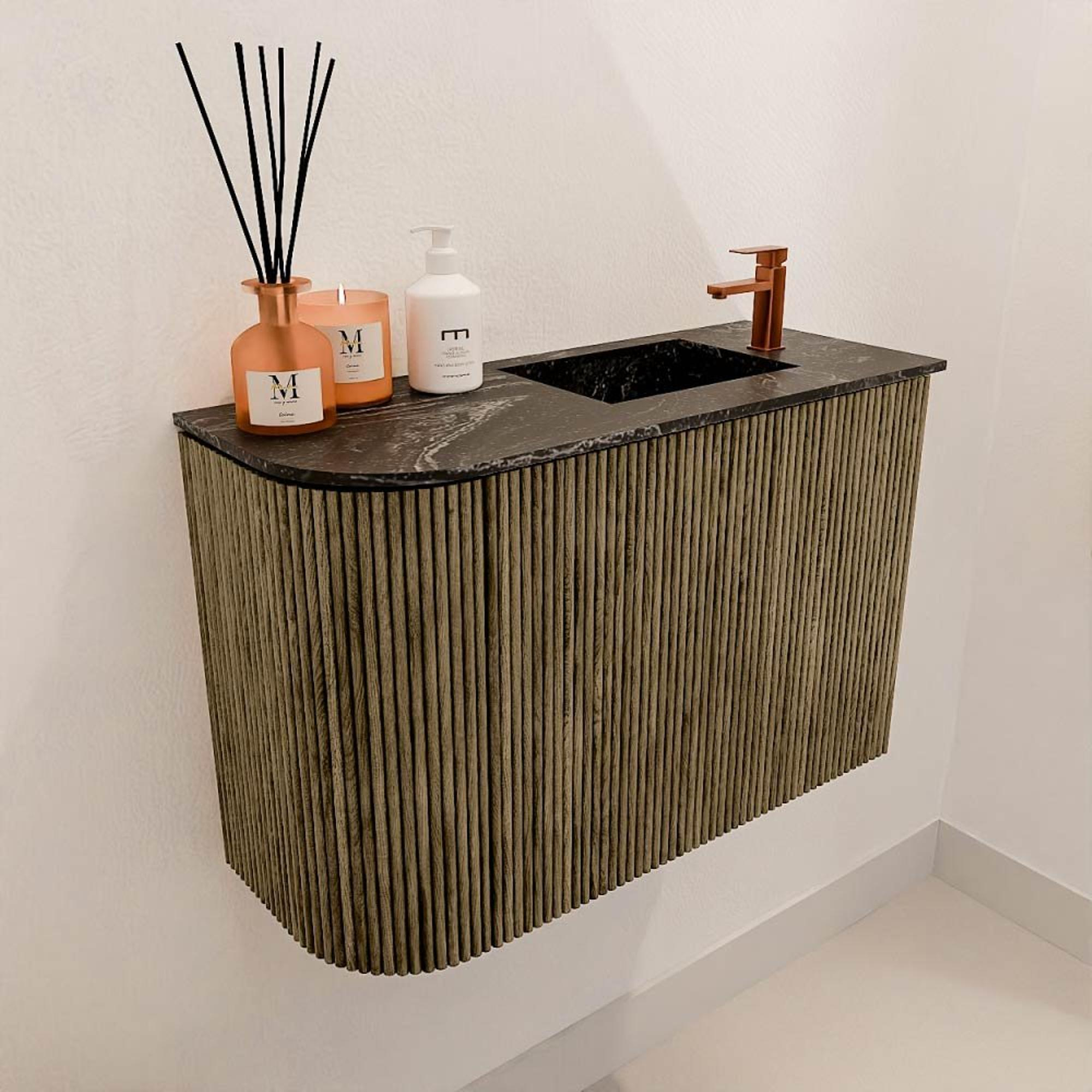 - Wastafel FAYE met kraangat rechts in de kleur Lava voor een stijlvol contrast