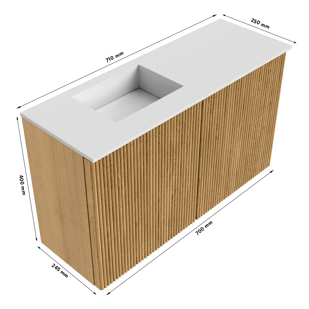 Met zijn warme Ruby kleur en de natuurlijke uitstraling van massief eikenhout straalt dit meubel pure elegantie uit. De verticale ribbels op de fronten geven het een unieke textuur die direct in het oog springt. Dit maakt het meubel niet alleen een functioneel element, maar ook een stijlvol pronkstuk in jouw badkamer. Door het tijdloze design blijft het meubel jarenlang mooi, ongeacht veranderende trends. Zo investeer je in een badkamermeubel dat altijd een luxe sfeer creëert en jouw persoonlijke stijl perfect weerspiegelt.