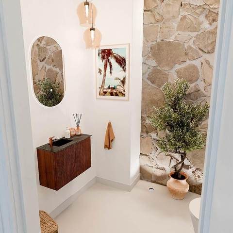 Transformeer jouw badkamer of gastentoilet met een meubel dat niet alleen praktisch is, maar ook een warme en stijlvolle uitstraling heeft. Dit compacte meubel van 60 cm breed past perfect in kleinere ruimtes zonder in te leveren op opbergruimte of design. De combinatie van de diepe, rijke Ruby-kleur en het natuurlijke eikenhout zorgt voor een tijdloze sfeer die jouw badkamer direct een luxe uitstraling geeft. Dankzij de zorgvuldig gekozen wastafel in Lava-kleur met een kraangat aan de linkerkant, geniet je van een functioneel en doordacht ontwerp dat naadloos aansluit op jouw dagelijkse routine. Dit meubel brengt rust en orde in je badkamer, terwijl het ook een echte blikvanger is die je gasten zal imponeren.