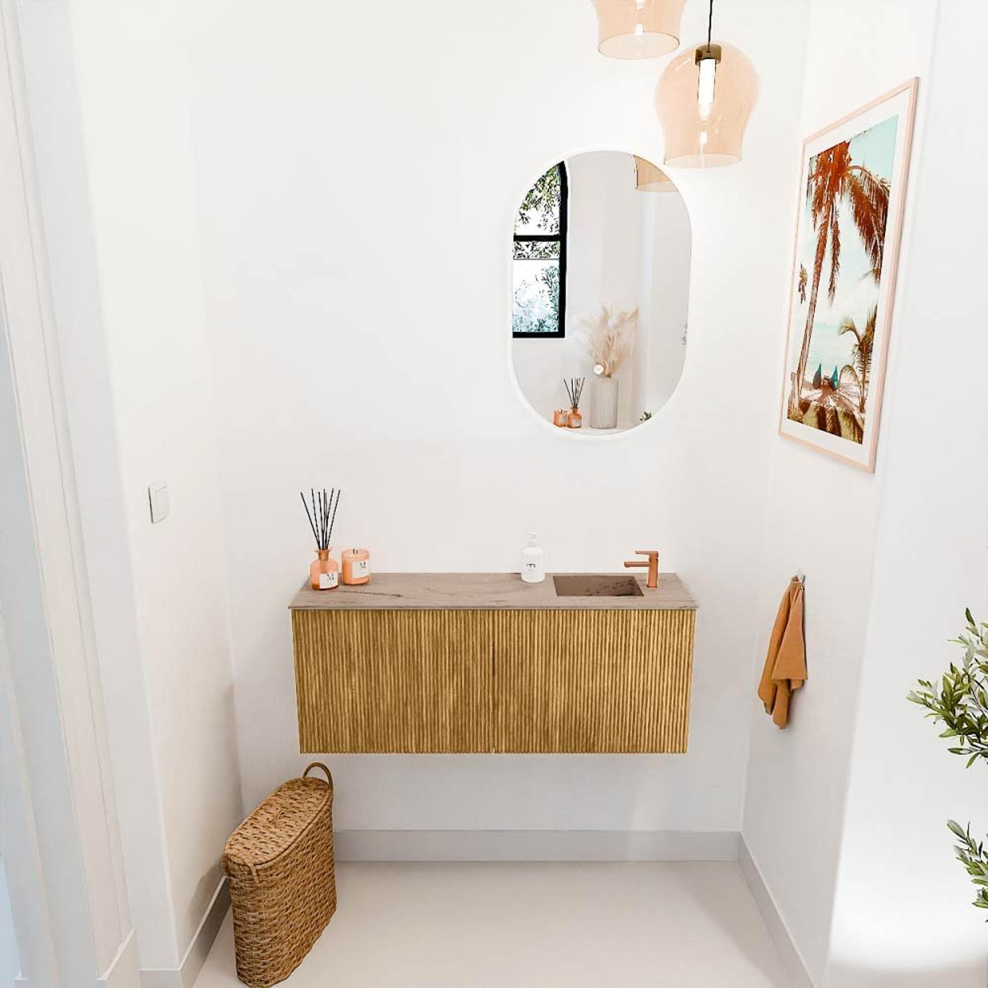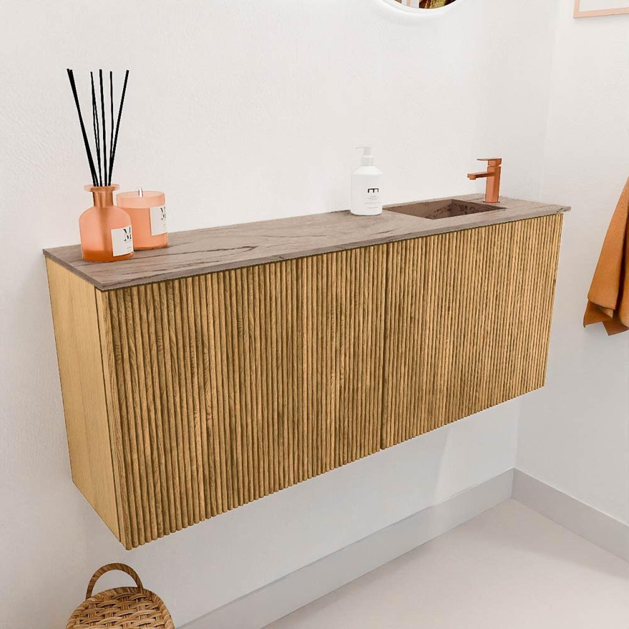 Mondiaz JOYA-DLUX 100cm toiletmeubel - kleur Oak - Wastafel FAYE positie Rechts 1 kraangat kleur Arena.