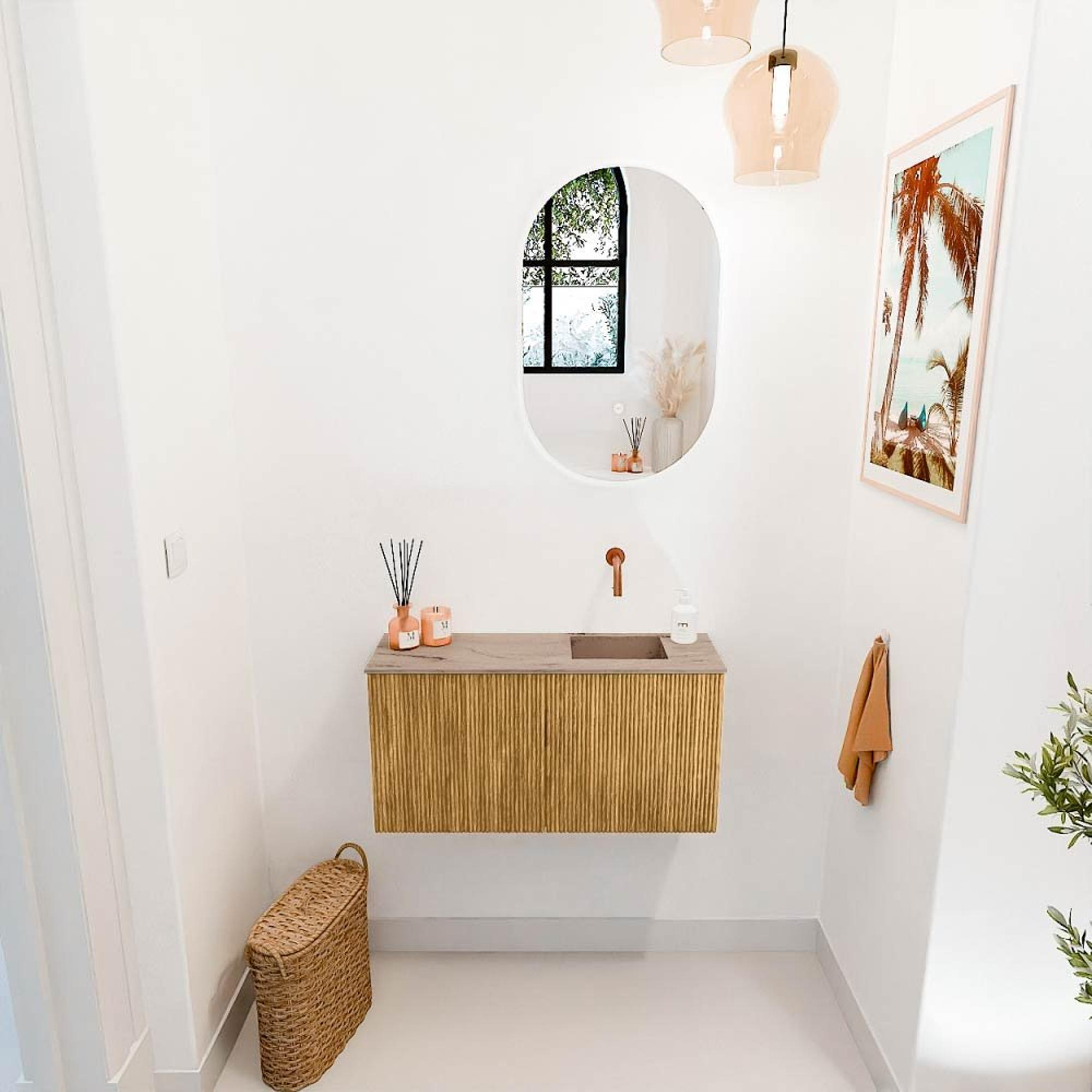 Mondiaz JOYA-DLUX 80cm toiletmeubel - kleur Oak - Wastafel FAYE positie Rechts Zonder kraangat kleur Arena.