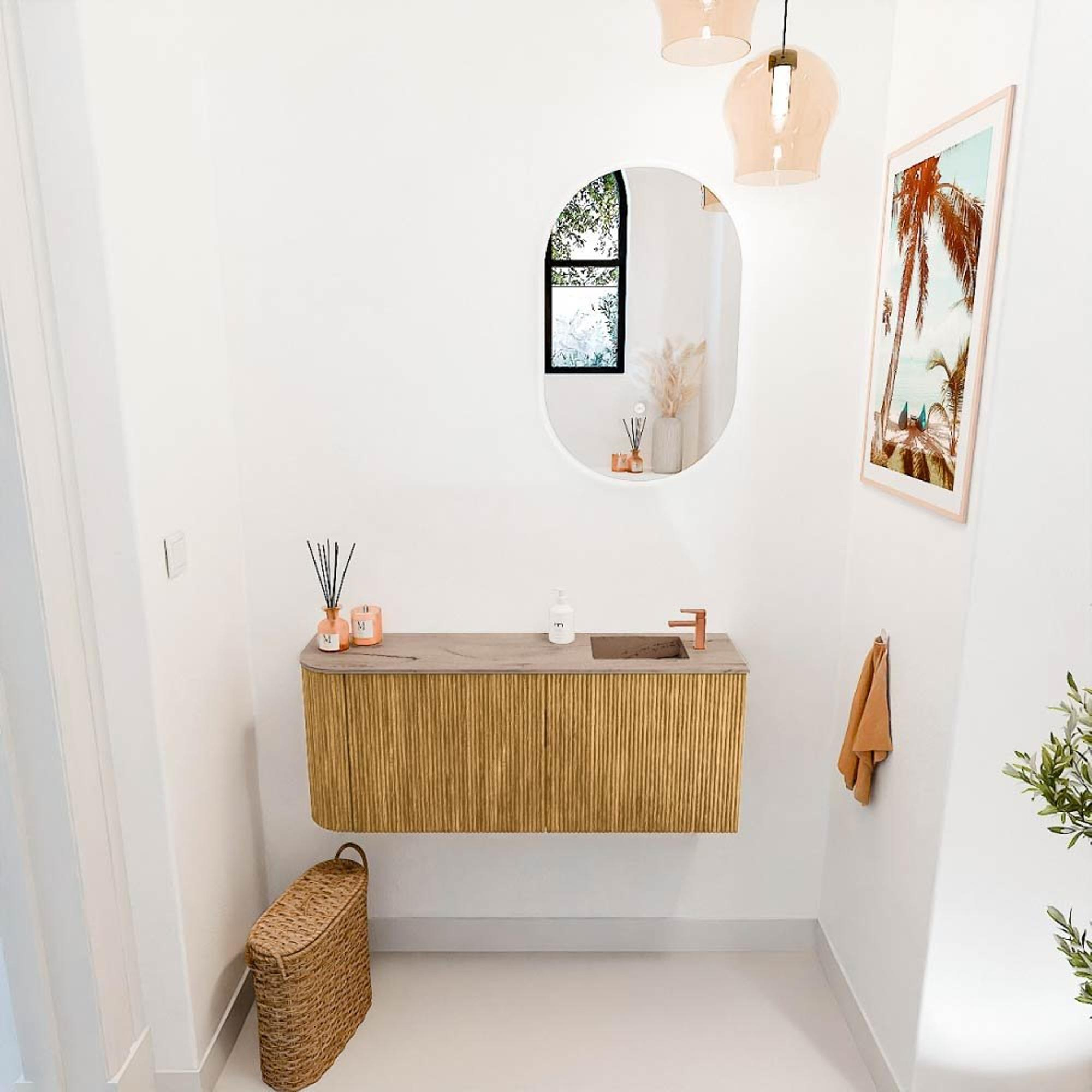 Mondiaz JOYA-DLUX 101.6cm toiletmeubel - ronding links kleur Oak - Wastafel FAYE positie Rechts 1 kraangat kleur Arena.