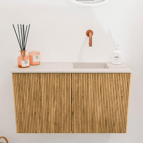 - Wastafel FAYE, rechts gepositioneerd zonder kraangat, voor maximale flexibiliteit