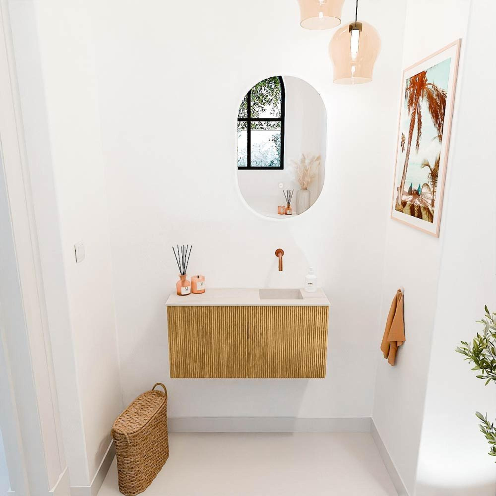 Mondiaz JOYA-DLUX 80cm toiletmeubel - kleur Oak - Wastafel FAYE positie Rechts Zonder kraangat kleur Meli.