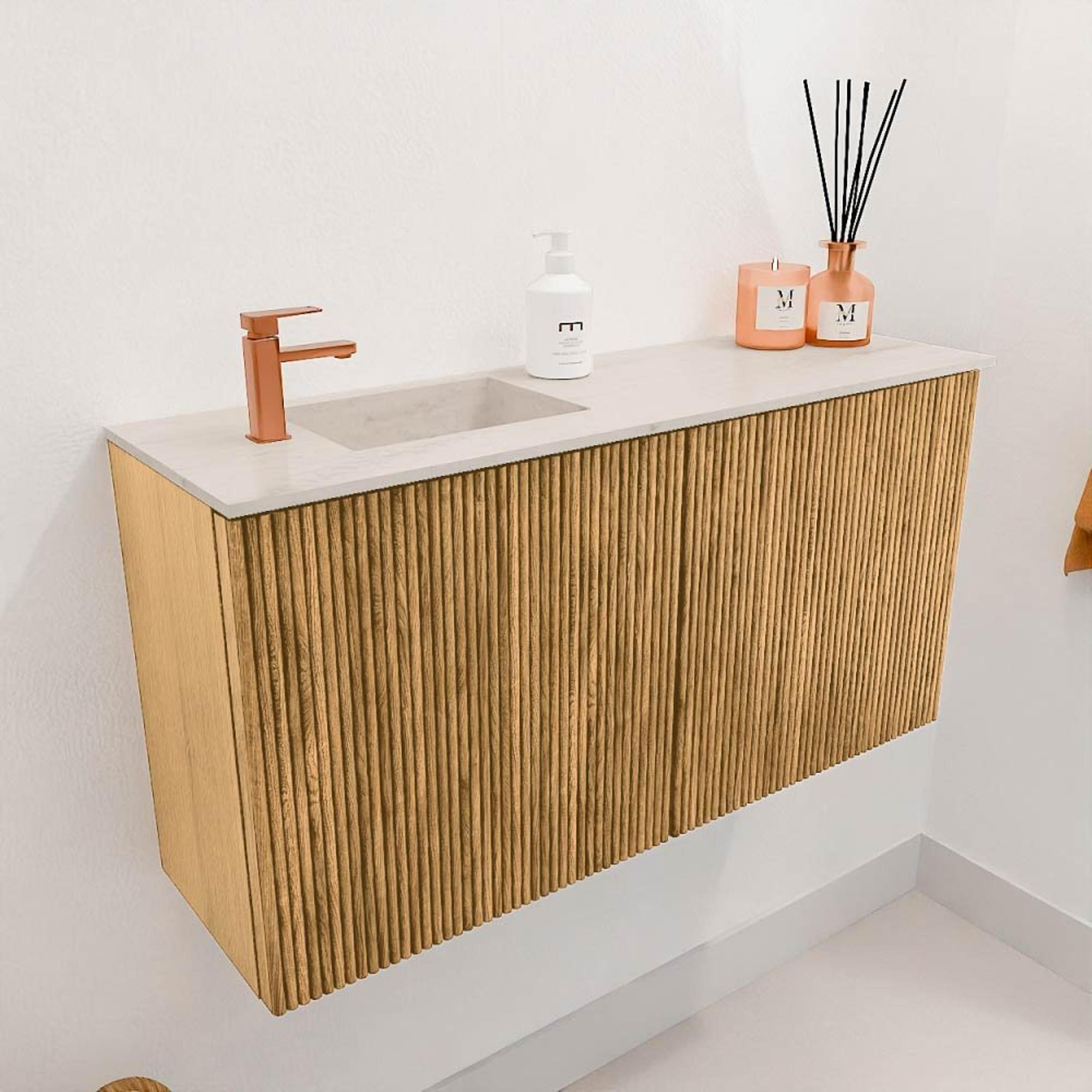 Mondiaz JOYA-DLUX 80cm toiletmeubel - kleur Oak - Wastafel FAYE positie Links 1 kraangat kleur Meli.