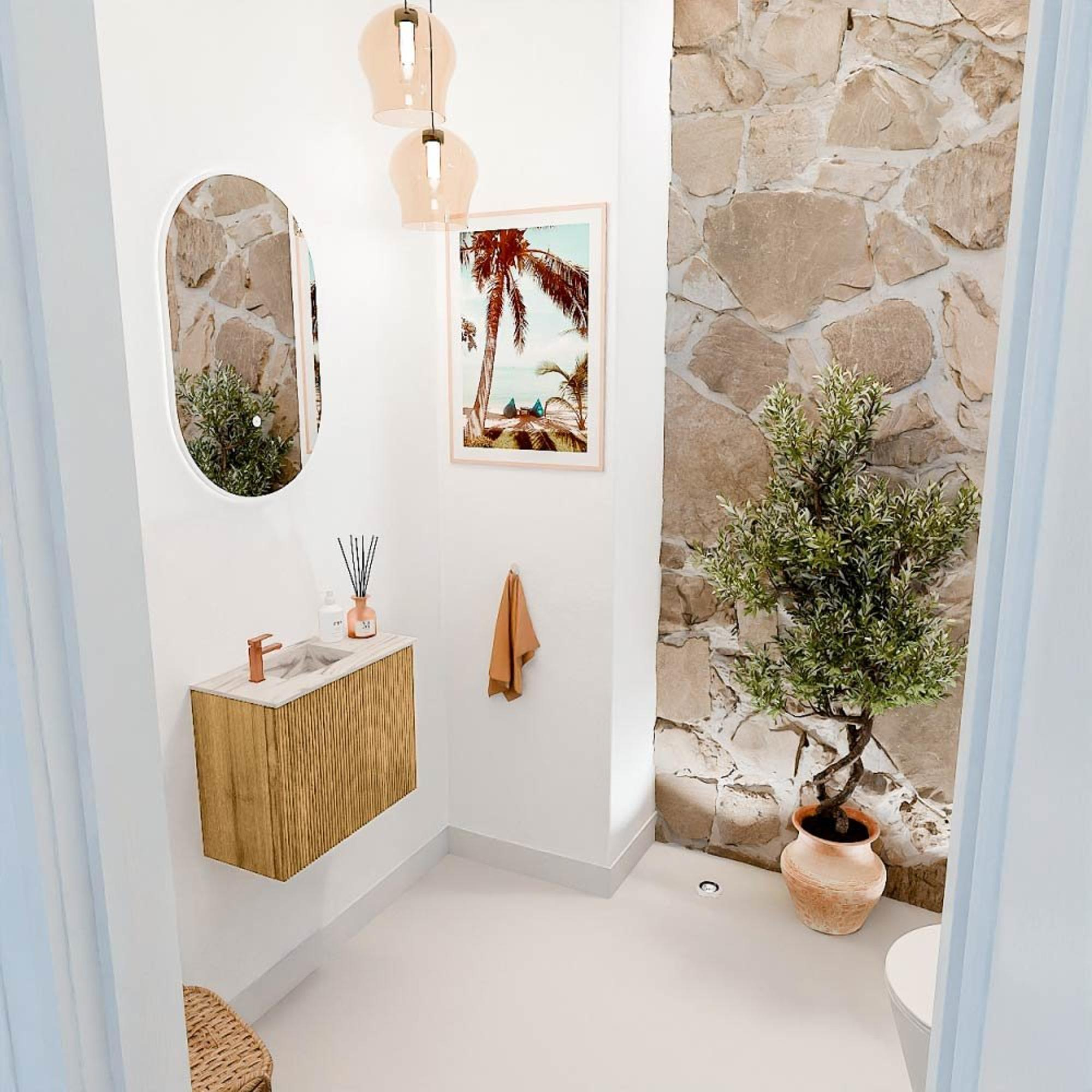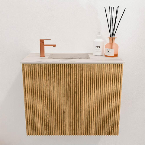 Mondiaz JOYA-DLUX 50cm toiletmeubel - kleur Oak - Wastafel FAYE positie Links 1 kraangat kleur Nata.