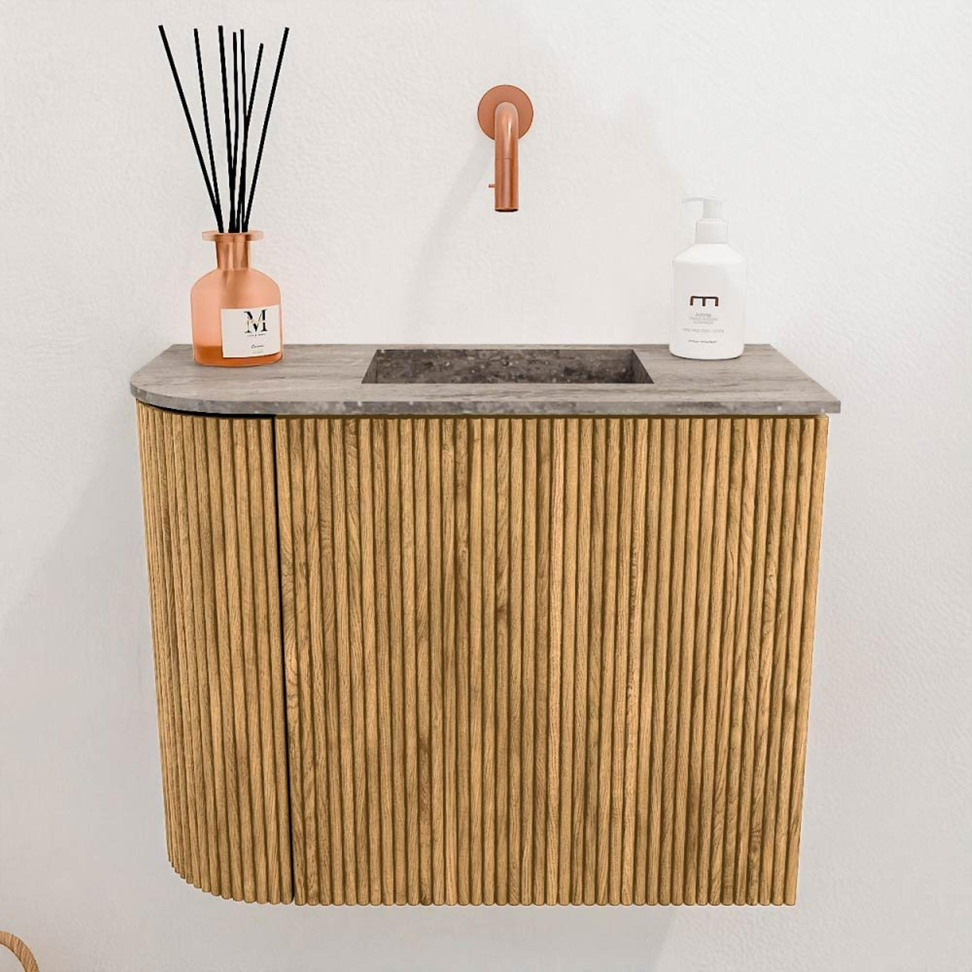 Mondiaz JOYA-DLUX 51.6cm toiletmeubel - ronding links kleur Oak - Wastafel FAYE positie Rechts Zonder kraangat kleur Oza.