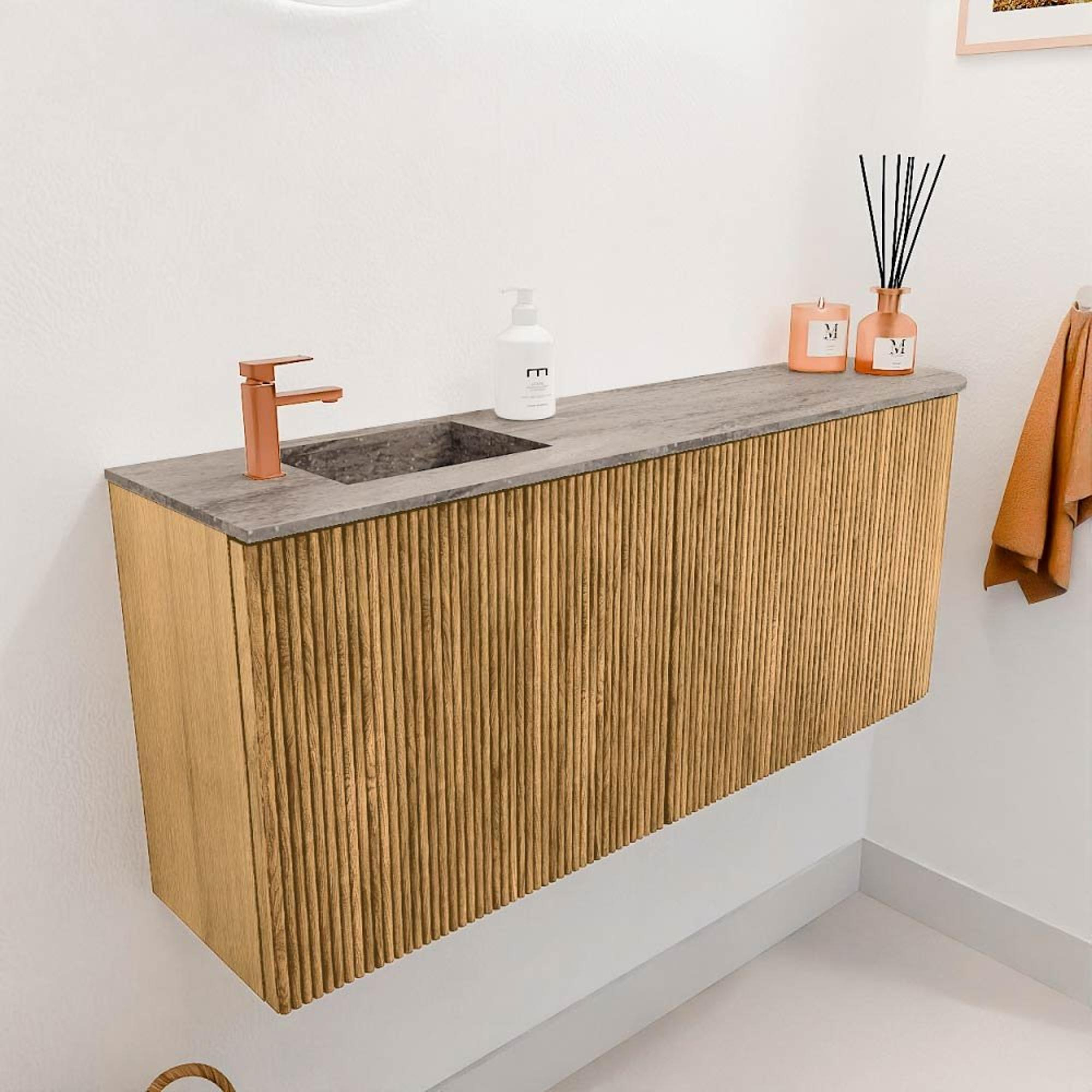 Mondiaz JOYA-DLUX 101.6cm toiletmeubel - ronding rechts kleur Oak - Wastafel FAYE positie Links 1 kraangat kleur Oza.