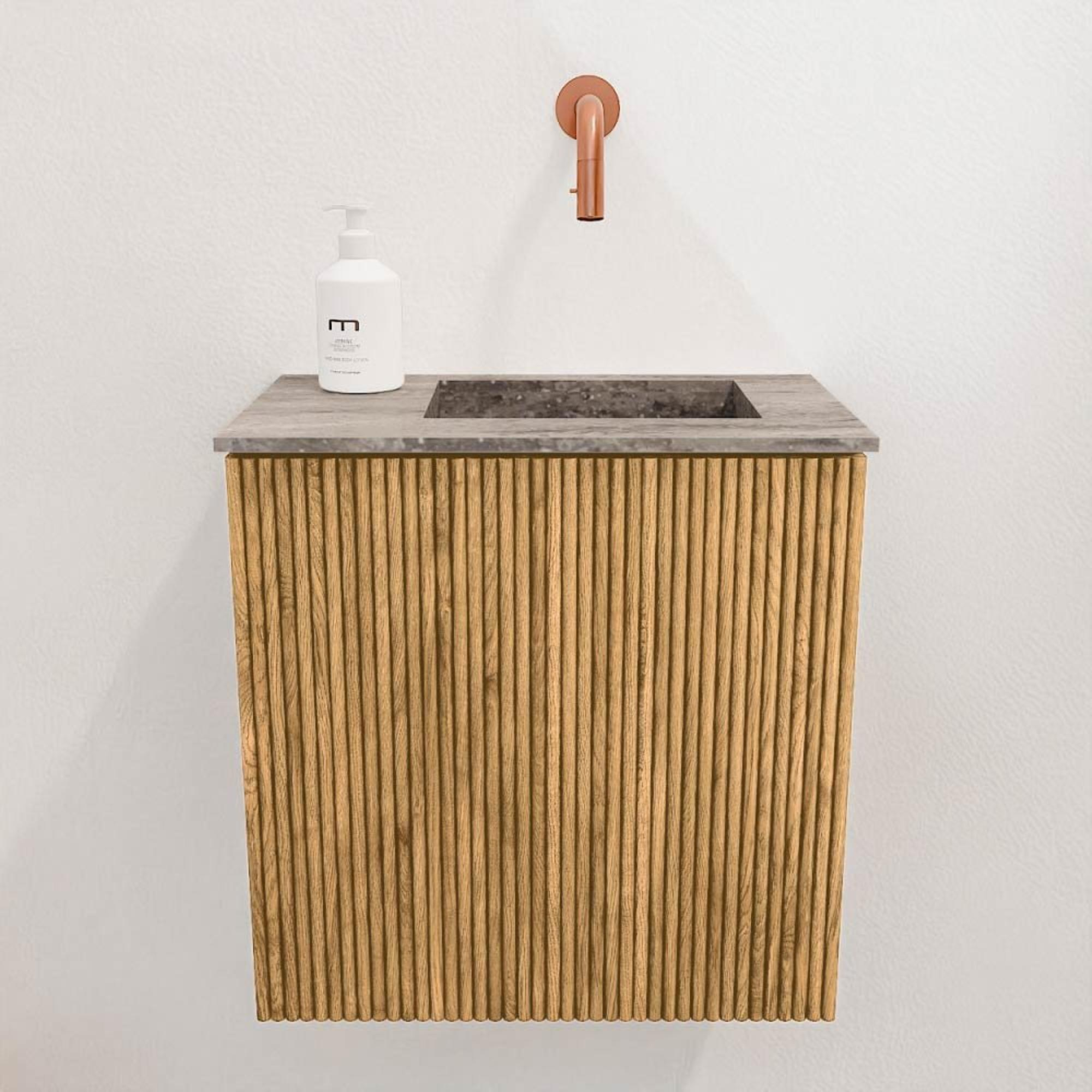 Mondiaz JOYA-DLUX 40cm toiletmeubel - kleur Oak - Wastafel FAYE positie Rechts Zonder kraangat kleur Oza.