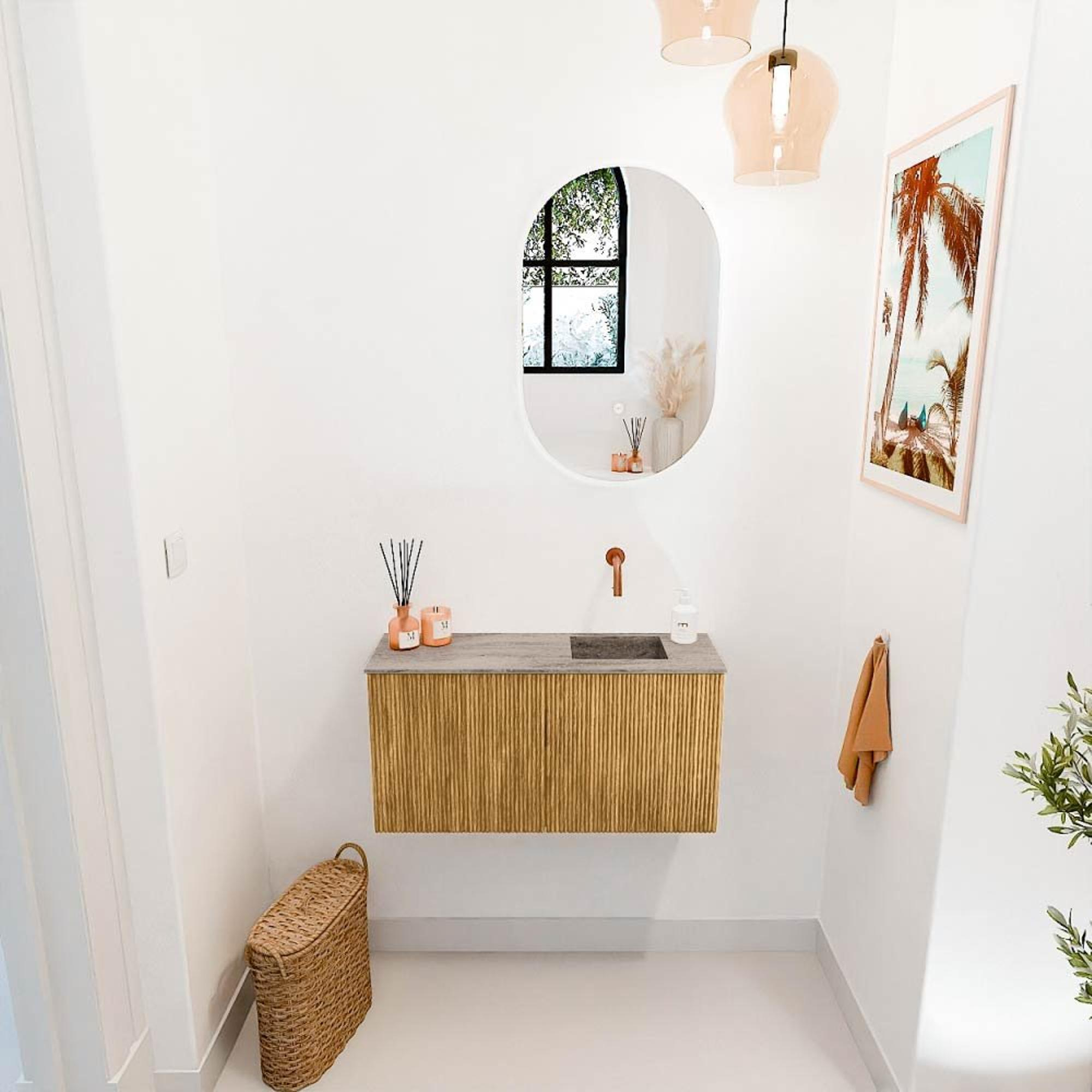 Mondiaz JOYA-DLUX 80cm toiletmeubel - kleur Oak - Wastafel FAYE positie Rechts Zonder kraangat kleur Oza.