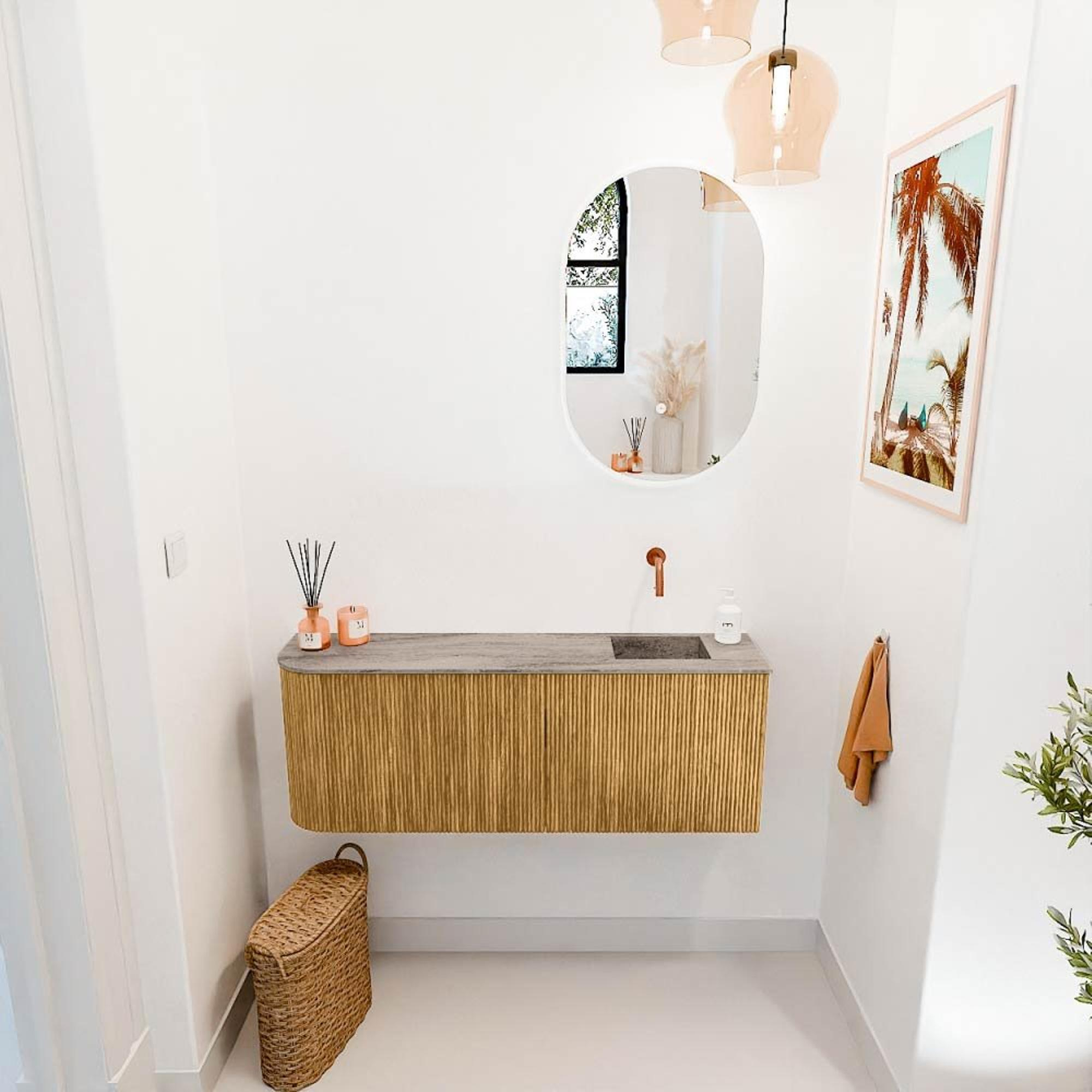 Mondiaz JOYA-DLUX 111.6cm toiletmeubel - ronding links kleur Oak - Wastafel FAYE positie Rechts Zonder kraangat kleur Oza.