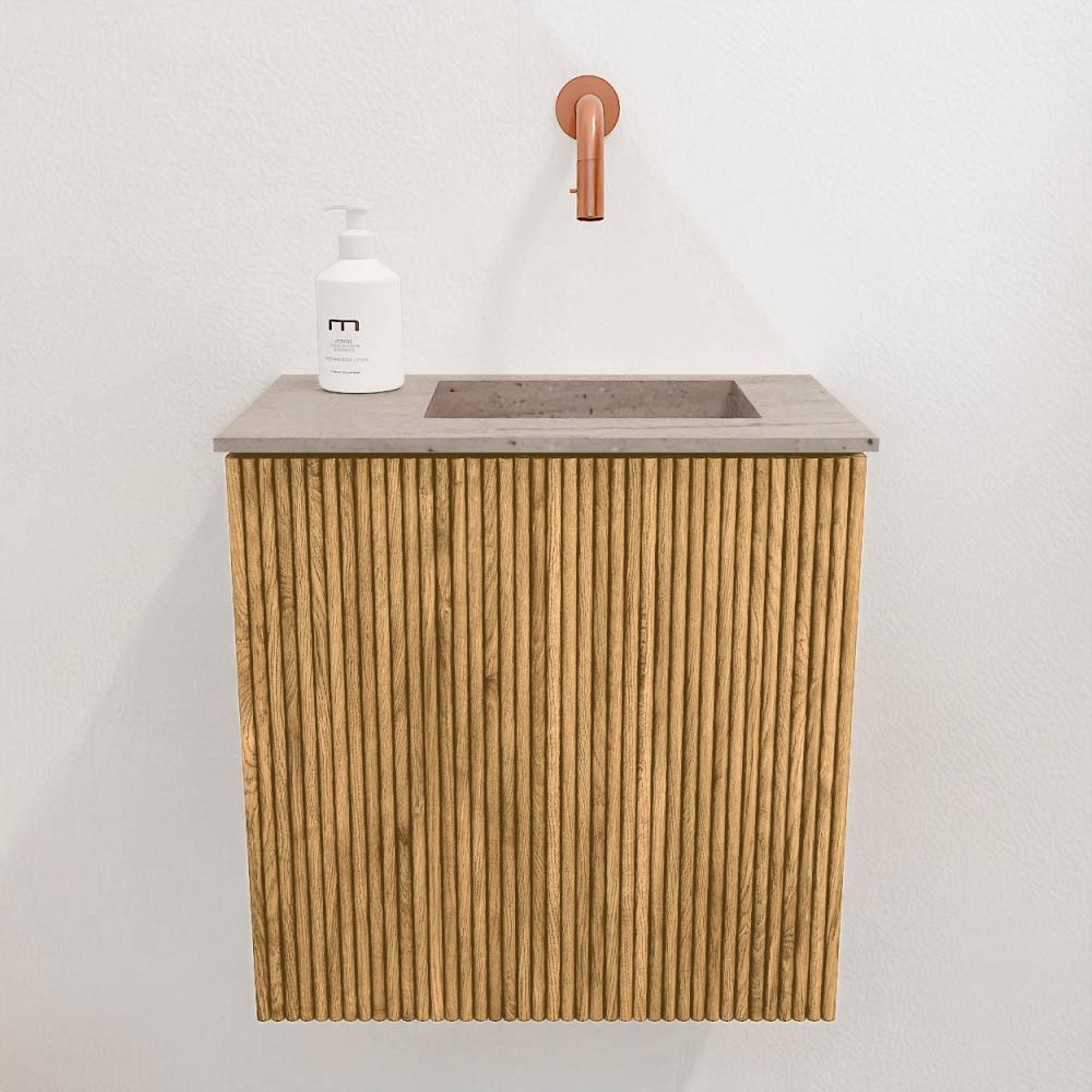 Mondiaz JOYA-DLUX 40cm toiletmeubel - kleur Oak - Wastafel FAYE positie Rechts Zonder kraangat kleur Saba.