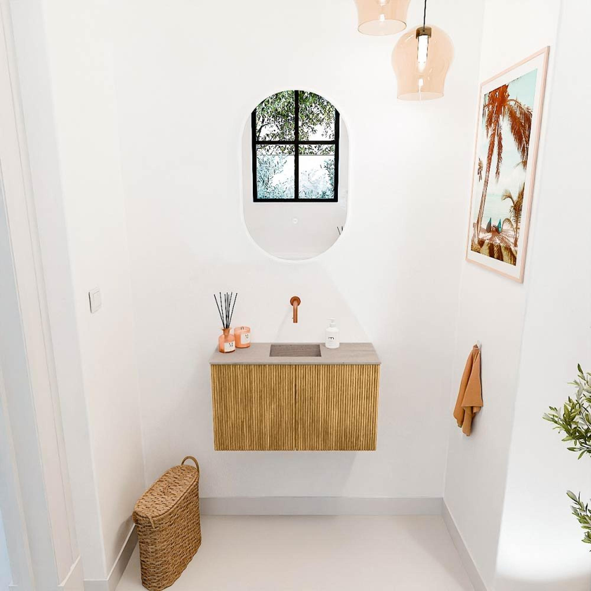 Mondiaz JOYA-DLUX 70cm toiletmeubel - kleur Oak - Wastafel FAYE positie Midden Zonder kraangat kleur Saba.