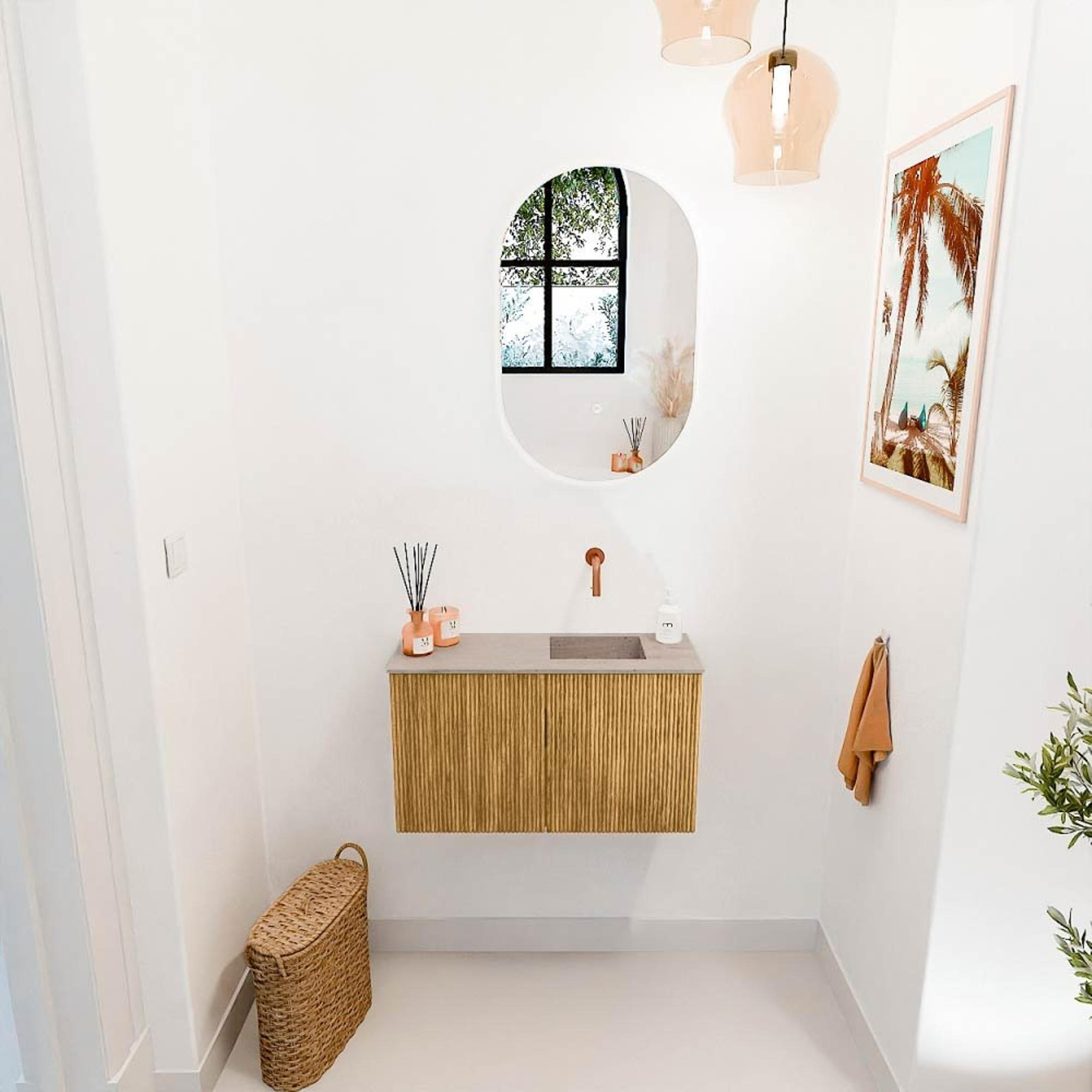Mondiaz JOYA-DLUX 70cm toiletmeubel - kleur Oak - Wastafel FAYE positie Rechts Zonder kraangat kleur Saba.