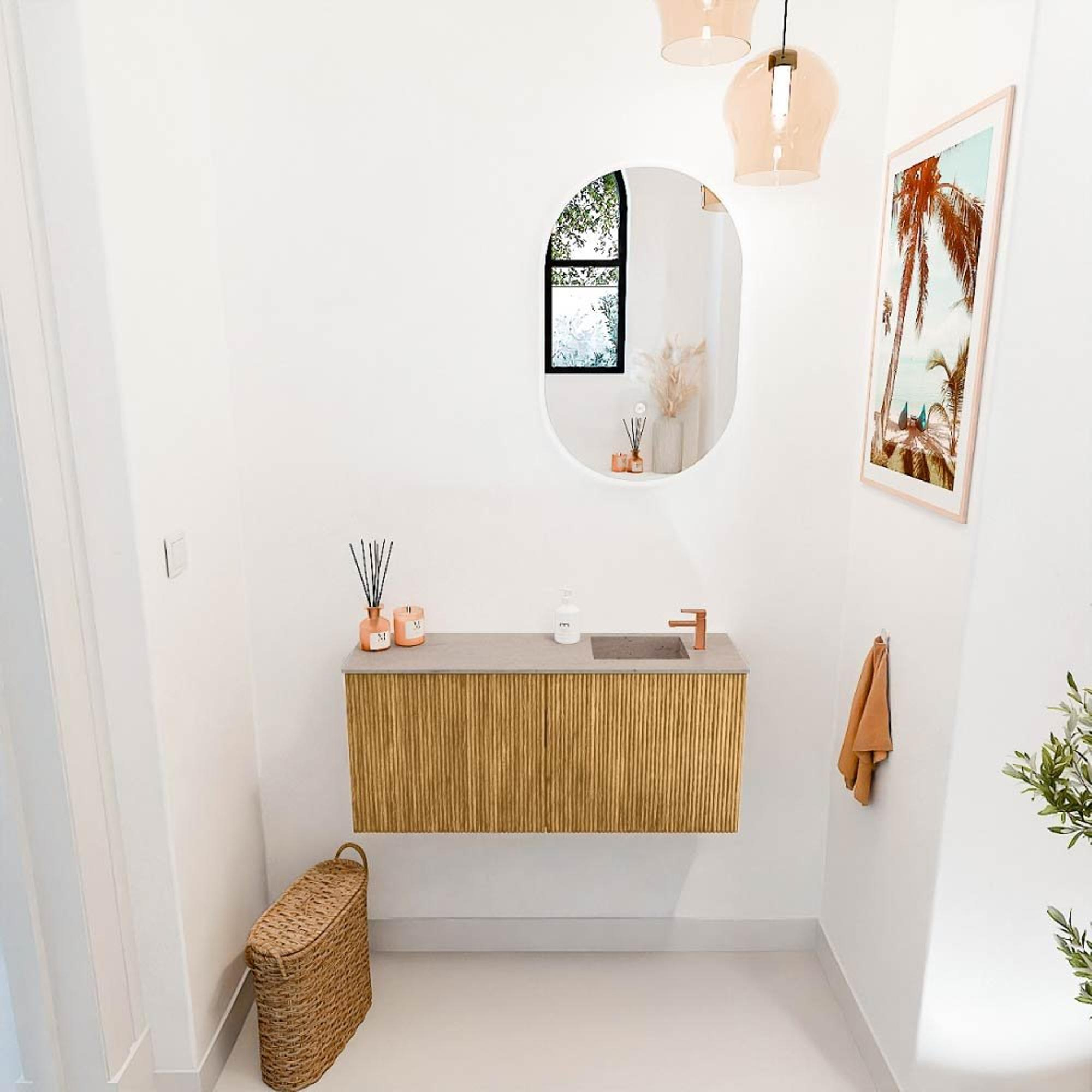 Mondiaz JOYA-DLUX 90cm toiletmeubel - kleur Oak - Wastafel FAYE positie Rechts 1 kraangat kleur Saba.