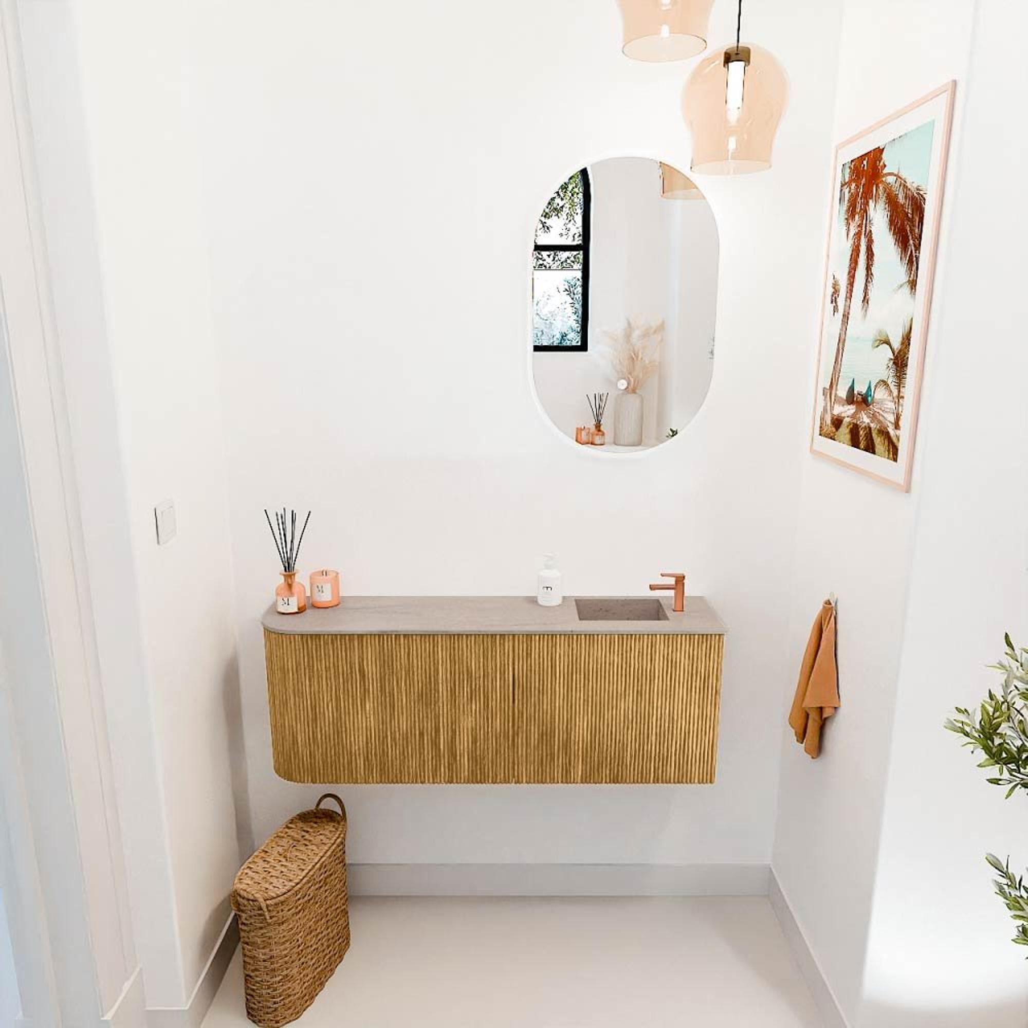 Mondiaz JOYA-DLUX 111.6cm toiletmeubel - ronding links kleur Oak - Wastafel FAYE positie Rechts 1 kraangat kleur Saba.