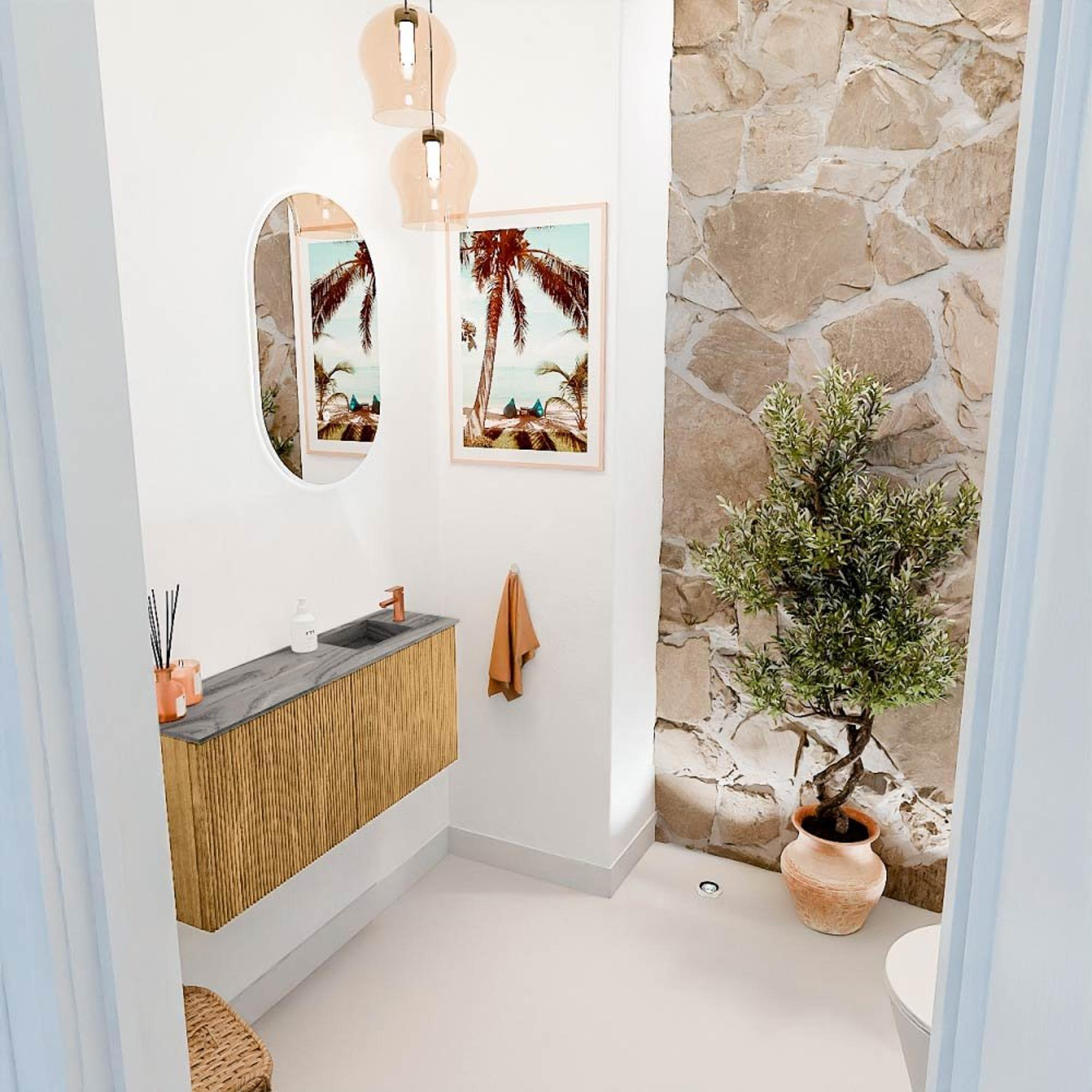 Mondiaz JOYA-DLUX 90cm toiletmeubel - kleur Oak - Wastafel FAYE positie Rechts 1 kraangat kleur Sombra.