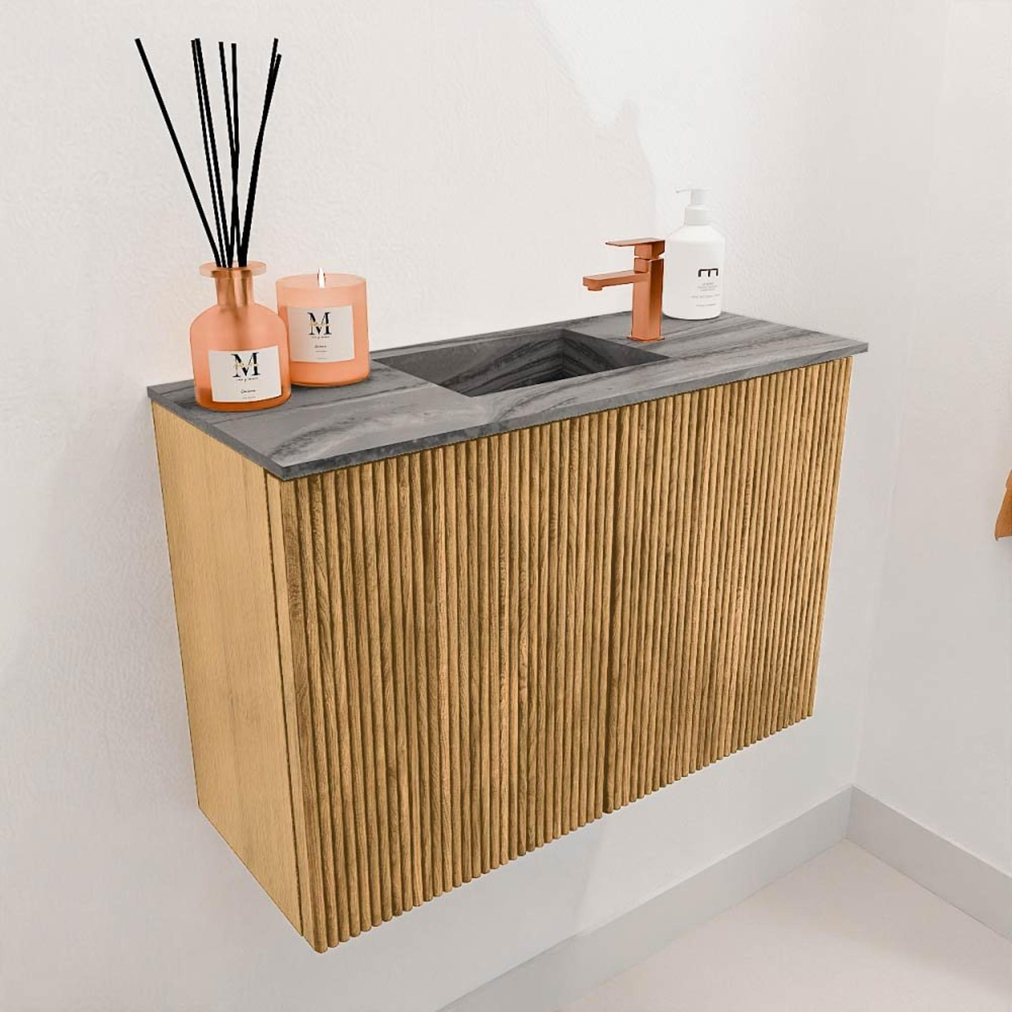 Mondiaz JOYA-DLUX 60cm toiletmeubel - kleur Oak - Wastafel FAYE positie Midden 1 kraangat kleur Sombra.