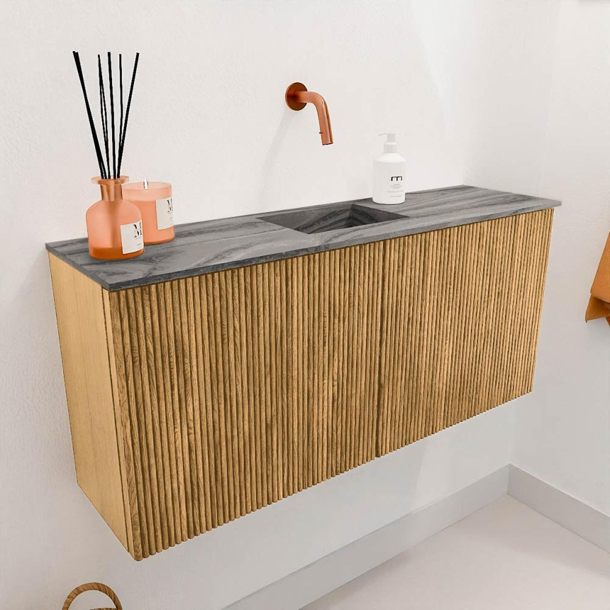 De keuze voor massief eikenhout en hoogwaardige fineerlagen garandeert niet alleen een prachtige look, maar ook een lange levensduur. Dit meubel is bestand tegen de dagelijkse vochtigheid in de badkamer en behoudt zijn kwaliteit en uitstraling jarenlang. Door te investeren in duurzame materialen kies je voor een meubel dat niet alleen nu, maar ook in de toekomst zijn waarde behoudt. Zo ben je verzekerd van een betrouwbare en milieubewuste keuze die bijdraagt aan een bewuste levensstijl zonder in te leveren op design.