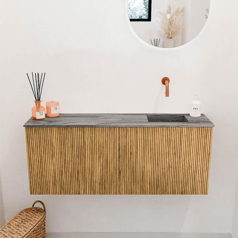Met dit prachtige meubel geef je jouw badkamer of gastentoilet direct een stijlvolle en warme uitstraling. Het combineert de natuurlijke charme van eikenhout met een strak, modern design dat moeiteloos in vrijwel elk interieur past. Dankzij de royale afmetingen van 100 cm breedte biedt het meubel voldoende opbergruimte om je badkamer netjes en georganiseerd te houden. De wastafel, subtiel geplaatst aan de rechterkant, is perfect voor dagelijks gebruik en zorgt voor een comfortabele ervaring zonder onnodige franjes. Dit meubel is niet alleen een lust voor het oog, maar ook uiterst praktisch dankzij de slimme indeling en hoogwaardige materialen die garant staan voor jarenlang plezier. Zo transformeer je jouw badkamer in een oase van rust en functionaliteit, waar je elke dag met plezier begint en eindigt.