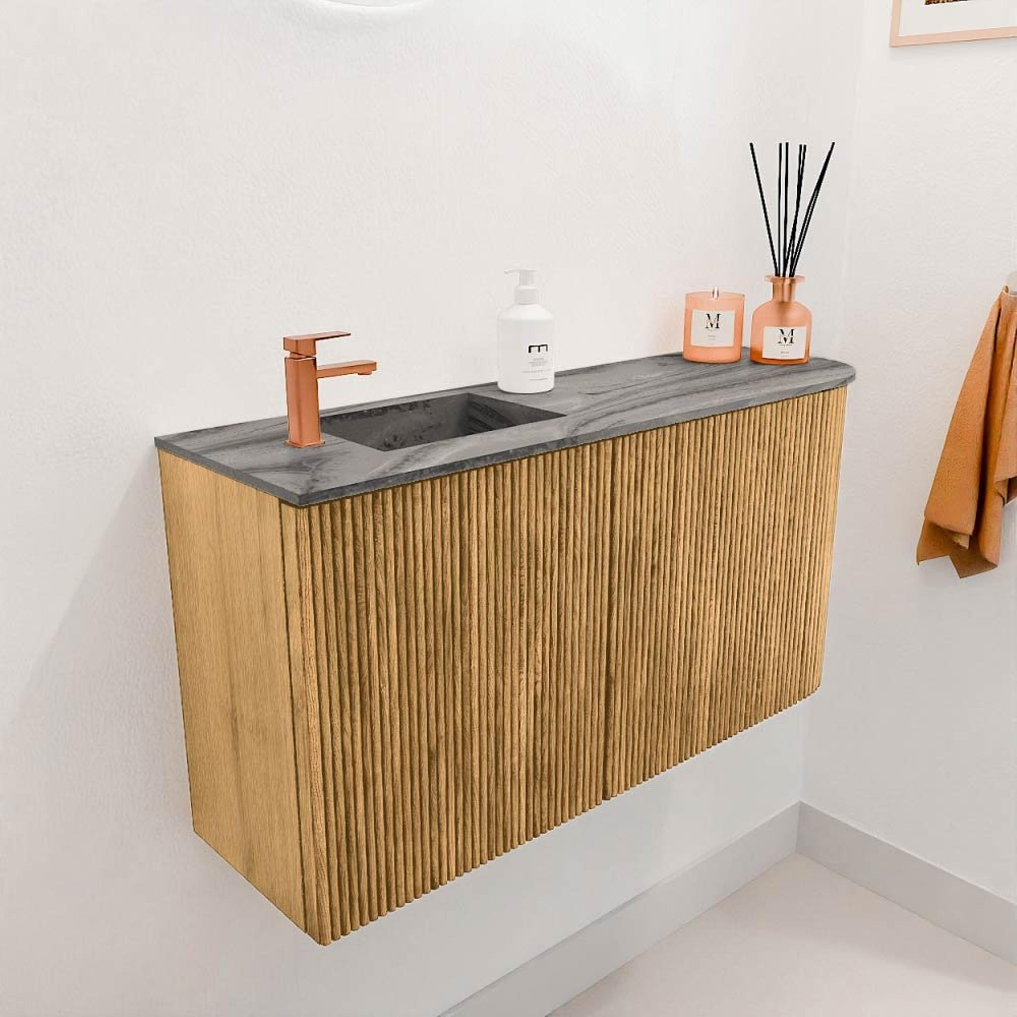 Mondiaz JOYA-DLUX 81.6cm toiletmeubel - ronding rechts kleur Oak - Wastafel FAYE positie Links 1 kraangat kleur Sombra.