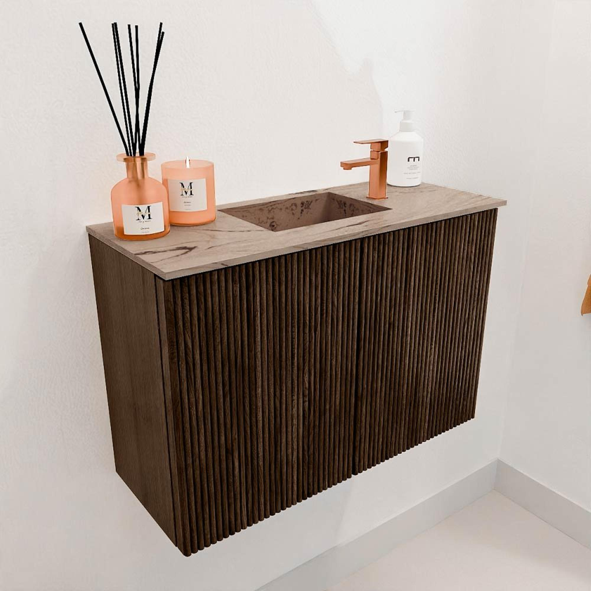 Mondiaz JOYA-DLUX 60cm toiletmeubel - kleur Walnut - Wastafel FAYE positie Midden 1 kraangat kleur Arena.
