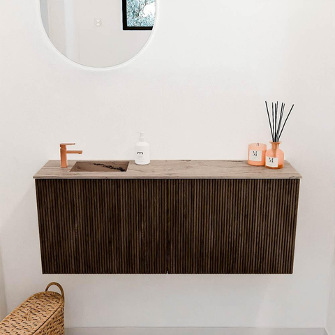 Mondiaz JOYA-DLUX 100cm toiletmeubel - kleur Walnut - Wastafel FAYE positie Links 1 kraangat kleur Arena.