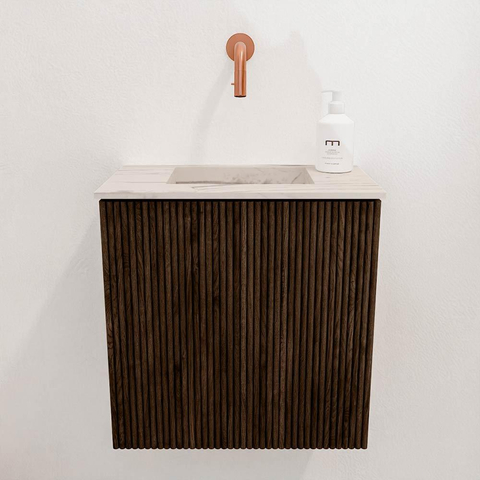 De warme walnootkleur en de verticale ribstructuur maken dit meubel tot een echte eyecatcher in jouw badkamer. Het gebruik van massief eikenhout aan de voorkant zorgt voor een hoogwaardige uitstraling die je niet snel ergens anders vindt. Door het subtiele design past het meubel moeiteloos bij zowel moderne als klassieke interieurs. Zo voeg je een tijdloze elegantie toe die jarenlang meegaat en je badkamer een luxe gevoel geeft. Het meubel is ontworpen met oog voor detail, waardoor het niet alleen mooi is om te zien, maar ook een echte meerwaarde biedt aan de sfeer van je ruimte.