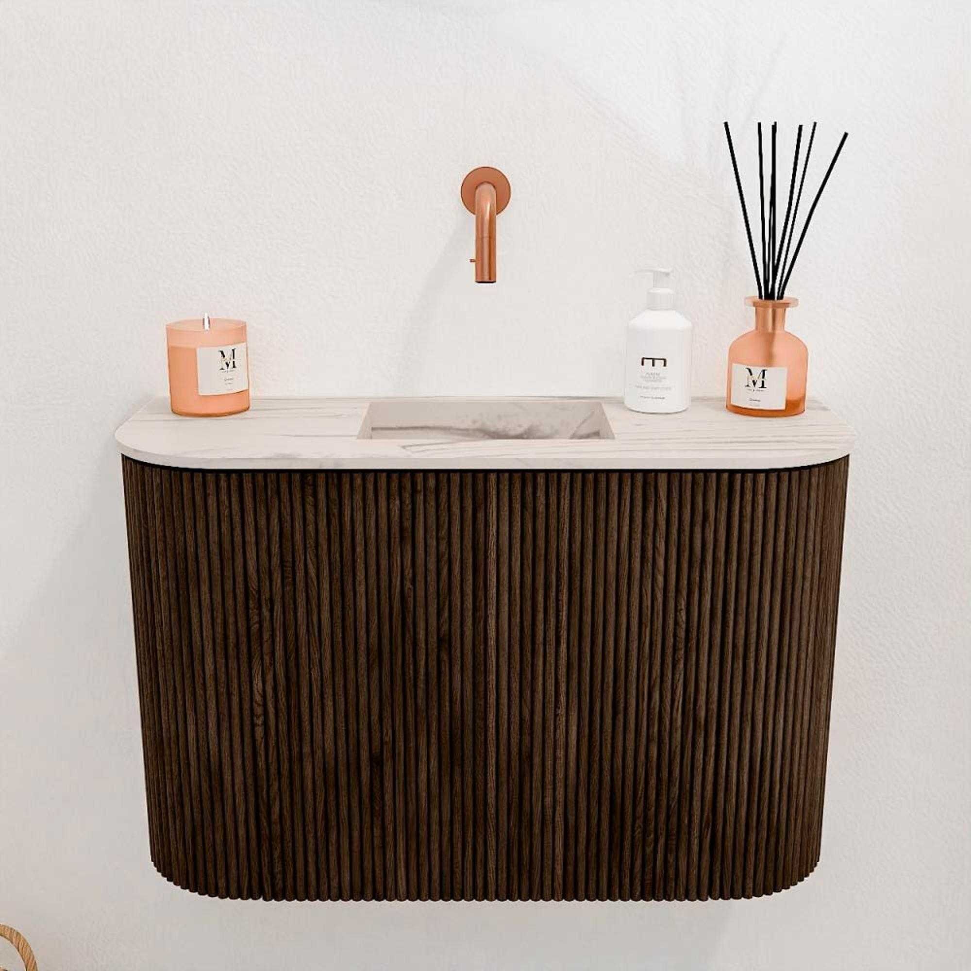 Mondiaz JOYA-DLUX 63.2cm toiletmeubel - ronding links en rechts kleur Walnut - Wastafel FAYE positie Midden Zonder kraangat kleur Nata.