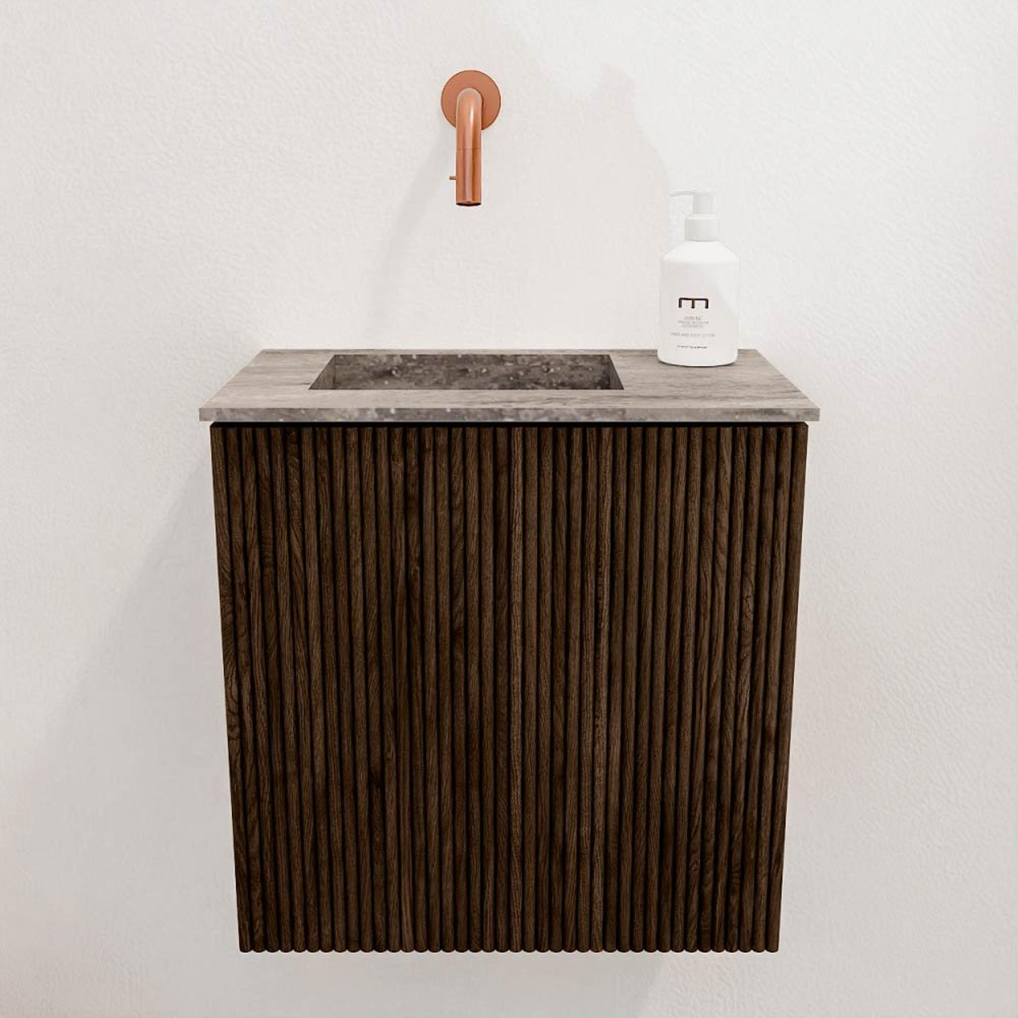 De warme walnootkleur en het gebruik van massief eikenhout maken dit meubel tot een echte blikvanger. De verticale groeven in het front zorgen voor een verfijnde, moderne uitstraling die moeiteloos aansluit bij diverse interieurstijlen. Of je nu kiest voor een strak design of juist een natuurlijke, warme sfeer, dit meubel past zich aan jouw smaak aan. Door de hoogwaardige afwerking straalt het meubel kwaliteit en vakmanschap uit, waardoor je badkamer direct een luxe uitstraling krijgt. Zo geniet je niet alleen van een functioneel meubel, maar ook van een stijlvol element dat jouw ruimte verrijkt.