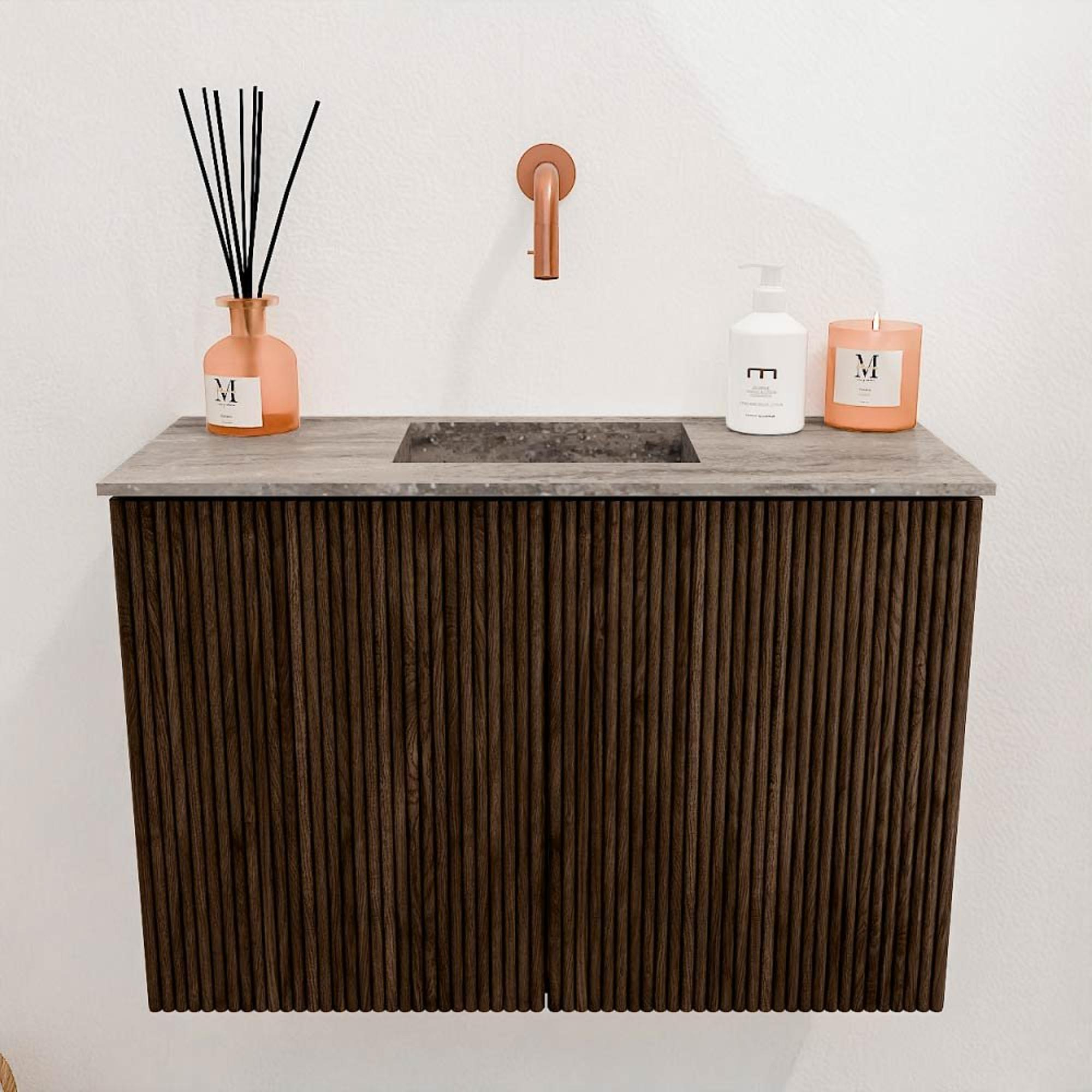De warme walnootkleur in combinatie met de fronten van massief eikenhout geven dit meubel een tijdloze en natuurlijke uitstraling. De verticale groeven in het hout versterken het verfijnde design en zorgen voor een subtiel speels effect dat jouw badkamer direct een premium look geeft. Dit meubel past moeiteloos in zowel moderne als klassieke interieurs, waardoor je badkamer een echte eyecatcher wordt. Door te kiezen voor een meubel met zo’n hoogwaardige afwerking, investeer je in een sfeer van rust en elegantie die je elke dag opnieuw zult waarderen.