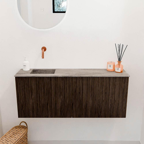De warme walnootkleur en de verticale ribbelstructuur op de kastfronten maken dit meubel tot een echte blikvanger. Het natuurlijke eikenhout geeft een authentieke en luxe uitstraling die perfect past in zowel moderne als klassieke badkamers. Door de subtiele details en hoogwaardige afwerking voelt het meubel niet alleen stijlvol aan, maar tilt het ook de sfeer van je badkamer naar een hoger niveau. Zo geniet je van een badkamer die er niet alleen mooi uitziet, maar ook een fijne plek is om te zijn.
