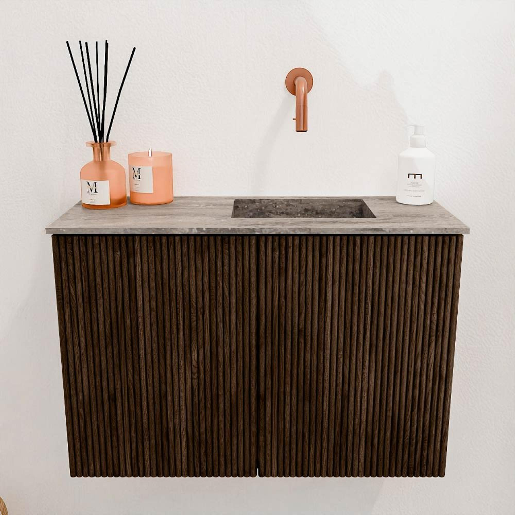 De warme walnootkleur en de fronten van massief eikenhout geven dit meubel een natuurlijke en luxe uitstraling. Dit zorgt ervoor dat het meubel moeiteloos past in diverse badkamerstijlen, van modern tot klassiek. De subtiele houtnerf voegt karakter toe en maakt elk meubel uniek. Door de strakke lijnen en het minimalistische design voelt jouw badkamer direct eigentijds en verzorgd aan. Zo creëer je een ruimte waar je met plezier elke dag begint en eindigt.